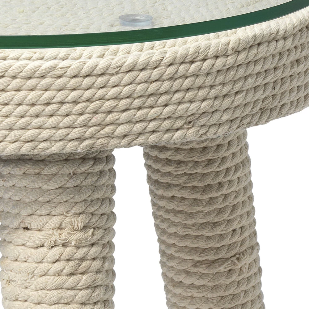 Simple, natural elements are combined with an expert’s eye to create this coastally inspired accent table from Jaime Young. White cotton rope is expertly hand-wrapped for a jaunty look and topped with a circle of tempered glass for strength and stability. The organic characteristics of the natural fiber and celebrated here! We allow it to take center stage, and slight flaws or fraying are not exceptions, but expected.