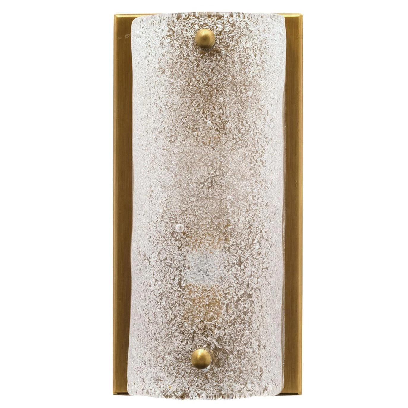 This clear decorative glass treatment feels like melted ice against an antique brass Back plate. We have two sizes in this wall sconce. They can be placed in any room in the house, and hang vertically or horizontally.