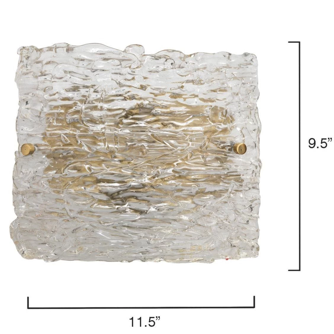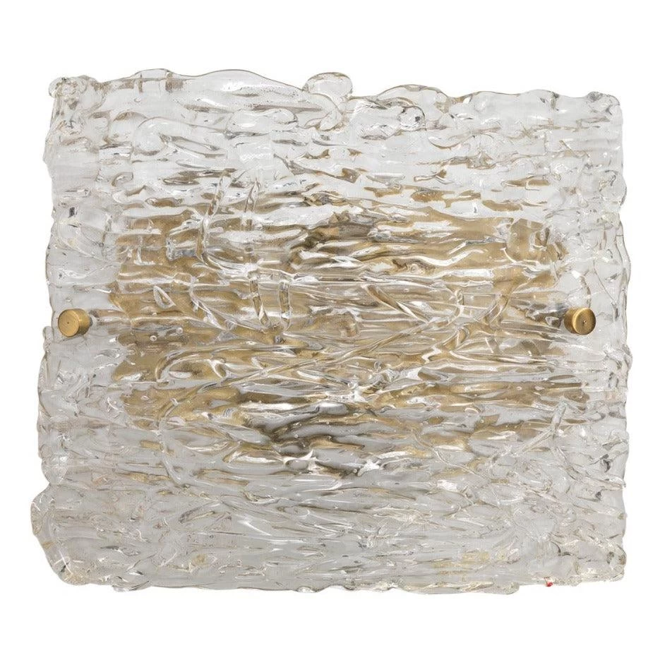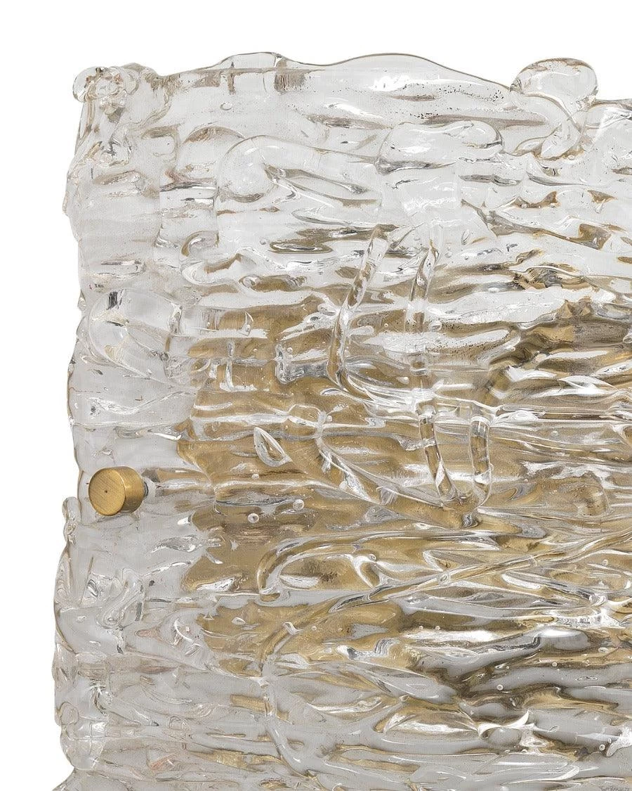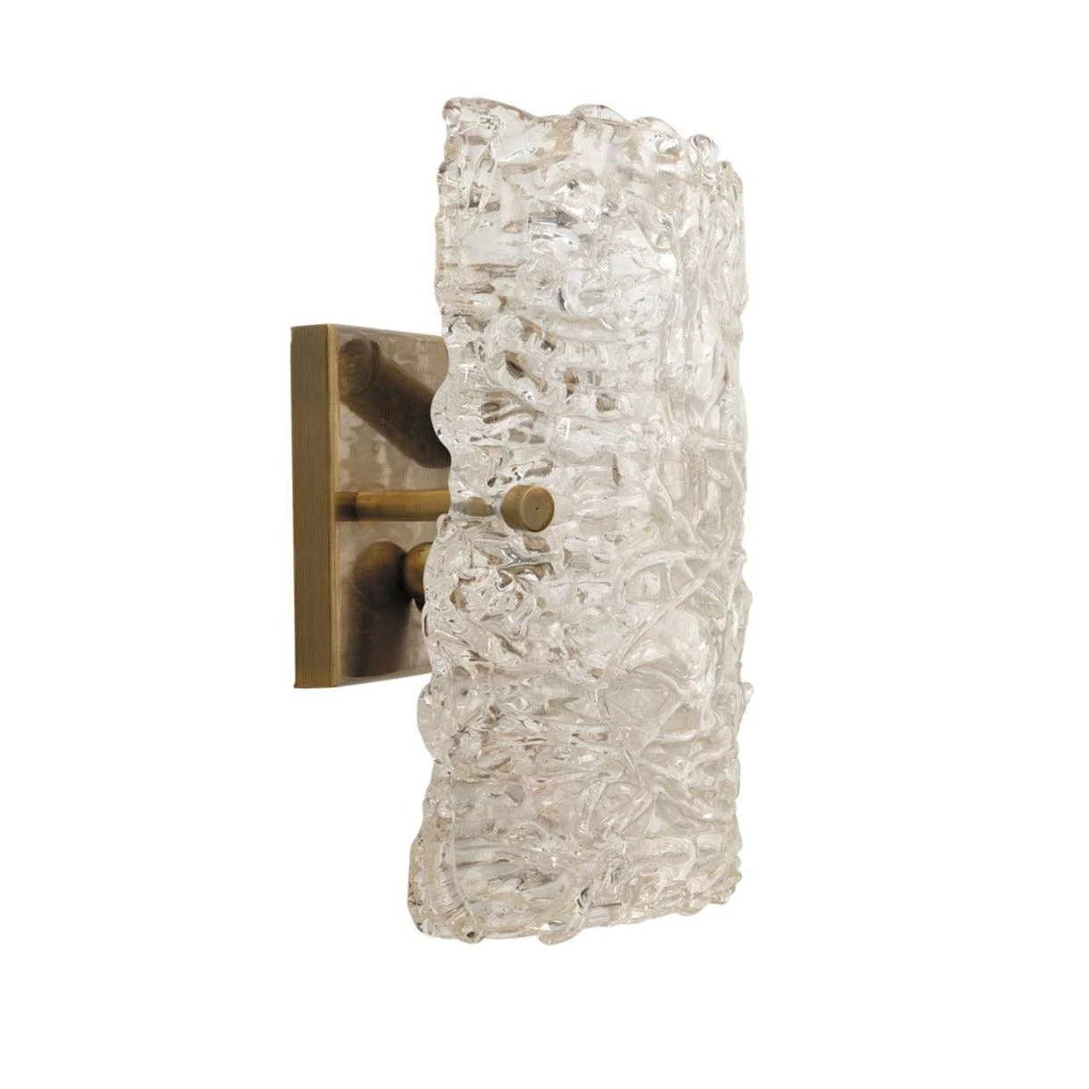 Delicate layers of highly textured glass is subtly curved around an antique brass backplate. As light streams through layered glass, the rivers of texture are highlighted, giving any space a serene ambiance.