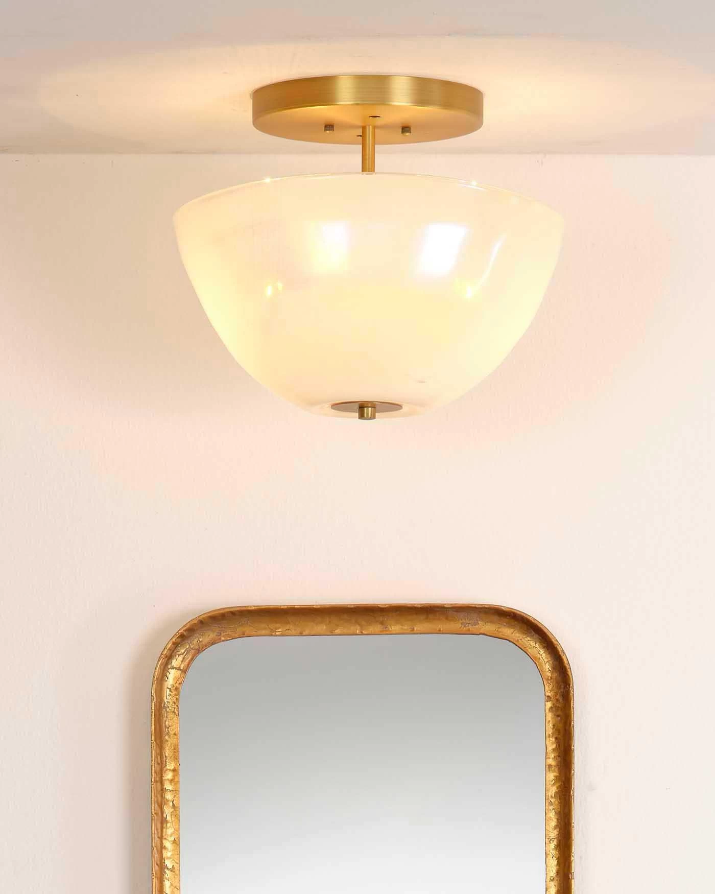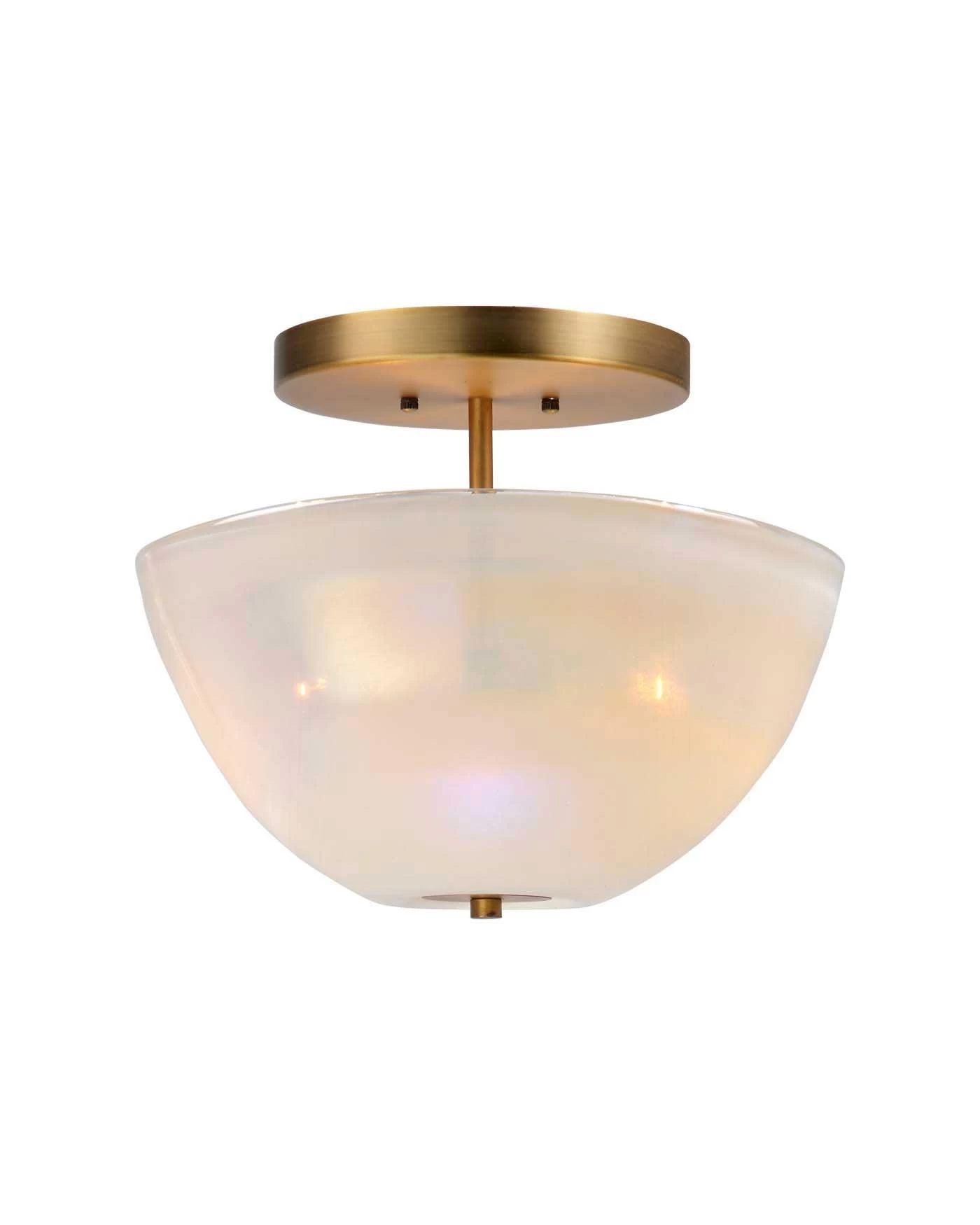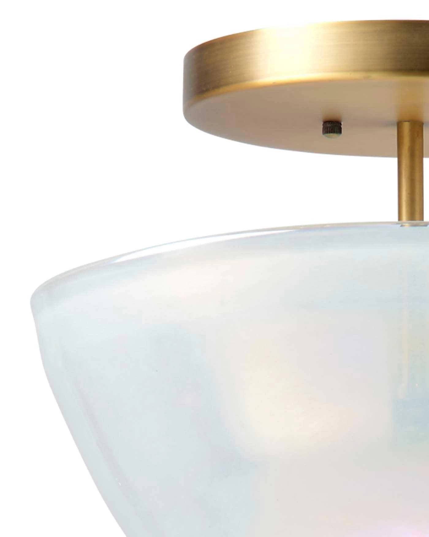 Antique Brass White Metallic Glass Vapor Bowl Semi-Flush Mount