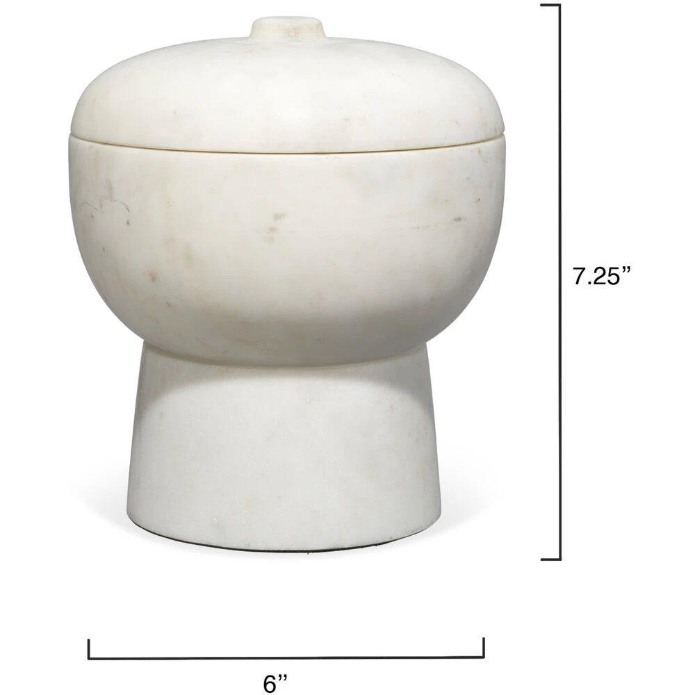 A softly rounded, lidded bowl is placed on top of a pillar base to create some seriously chic storage! These expertly crafted marble containers celebrate the beauty of the natural stone from which they are carved, and no two will be identical. Use with cotton balls in the bath, jewelry in your dressing area, or fill with potpourri to beautify and gently scent your entry.