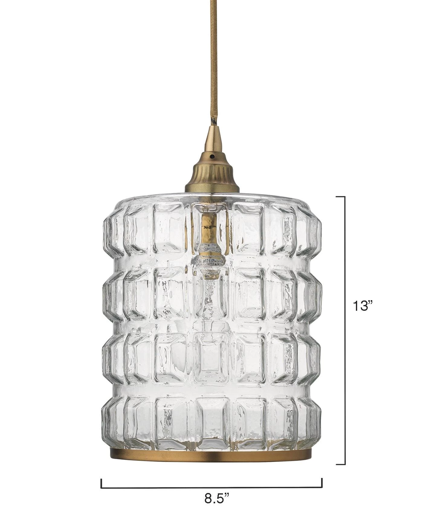The glass block grid pattern and antique brass accents give it a cool retro Mid Century Modern look.