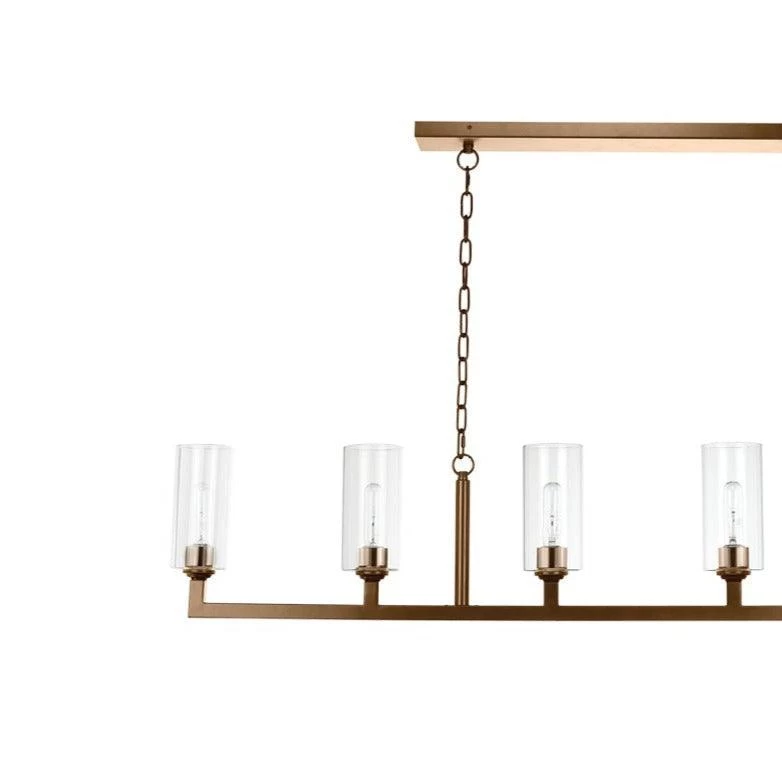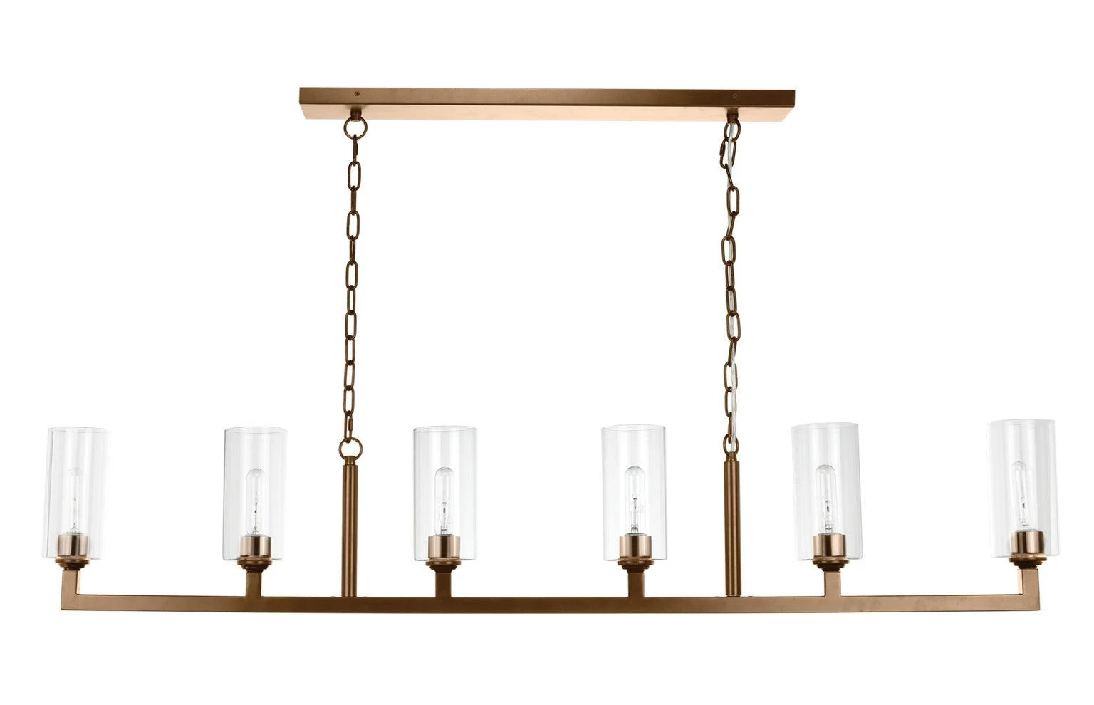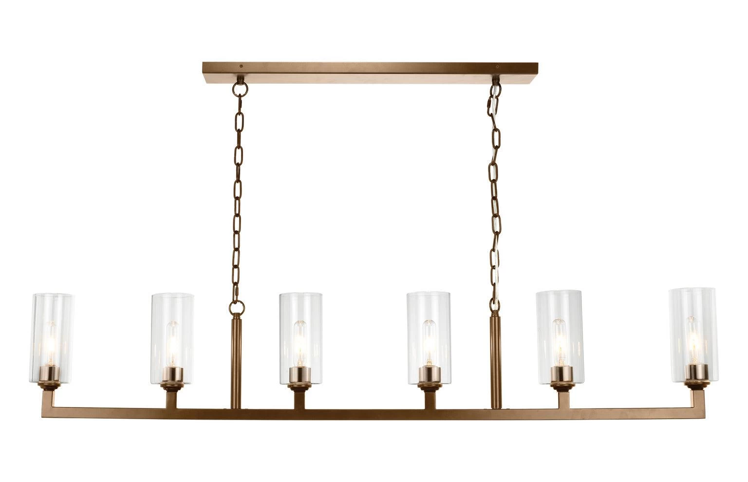 Brass, Glass Dining Room Linear 6 Light Chandelier