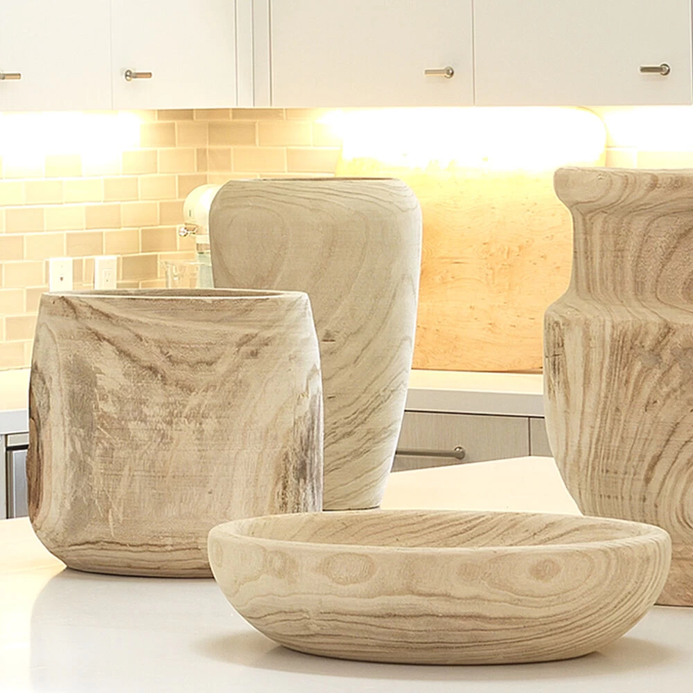 This vase is a beautiful way to display faux or real florals. Hand-carved from solid wood with a natural finish, allowing the natural wood grain and knots to take center stage. It’s the perfect rustic touch to any tabletop.