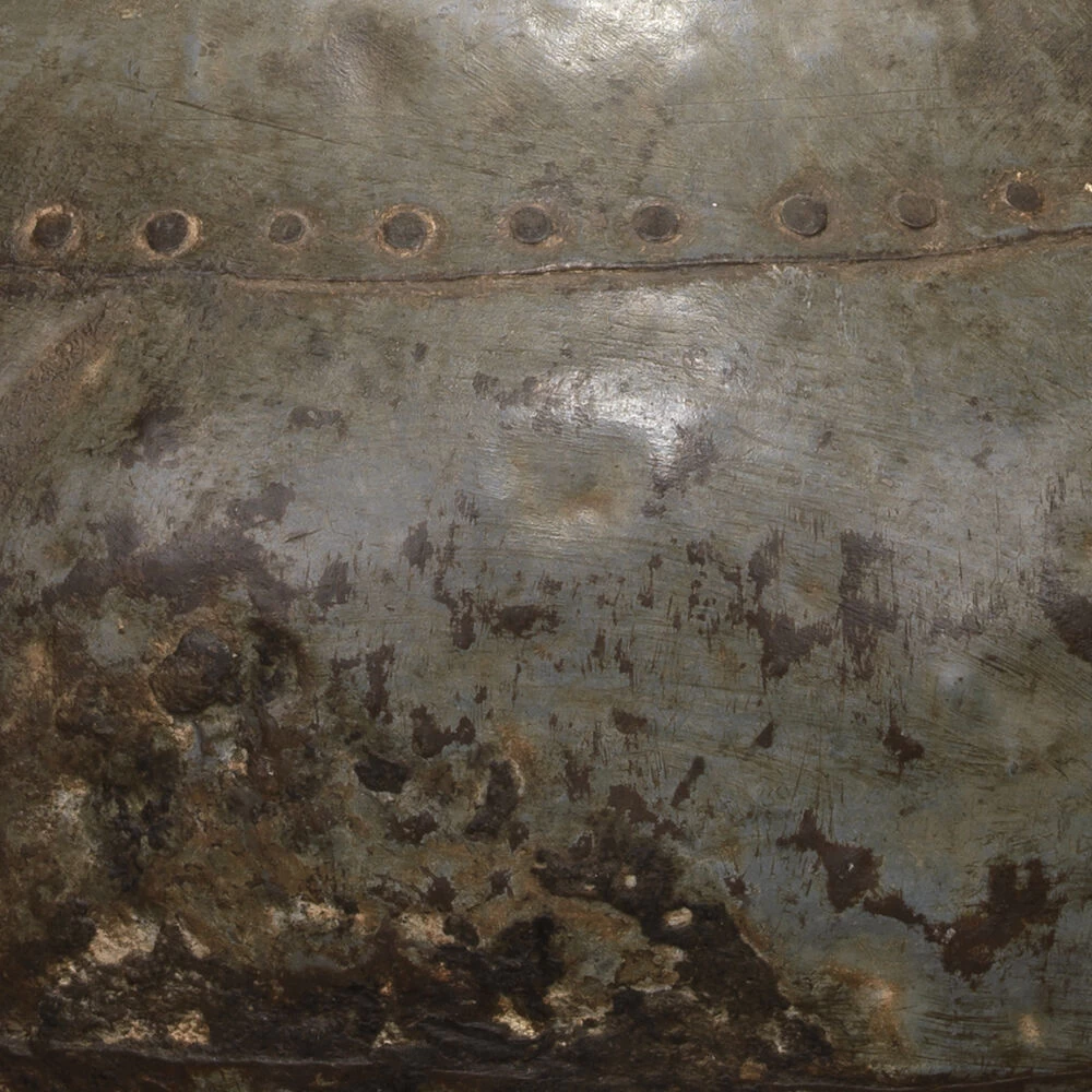 Add a natural and worn look to your home with this vintage inspired table lamp. A round metal base finished in gun metal is topped with a fatigue linen shade that offers ambient illumination. No two lamps will be alike.