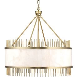 We love this chandelier and its two tones of metals. Hand leafed in a champagne finish with metal disks in three tiers makes this piece a really special statement.