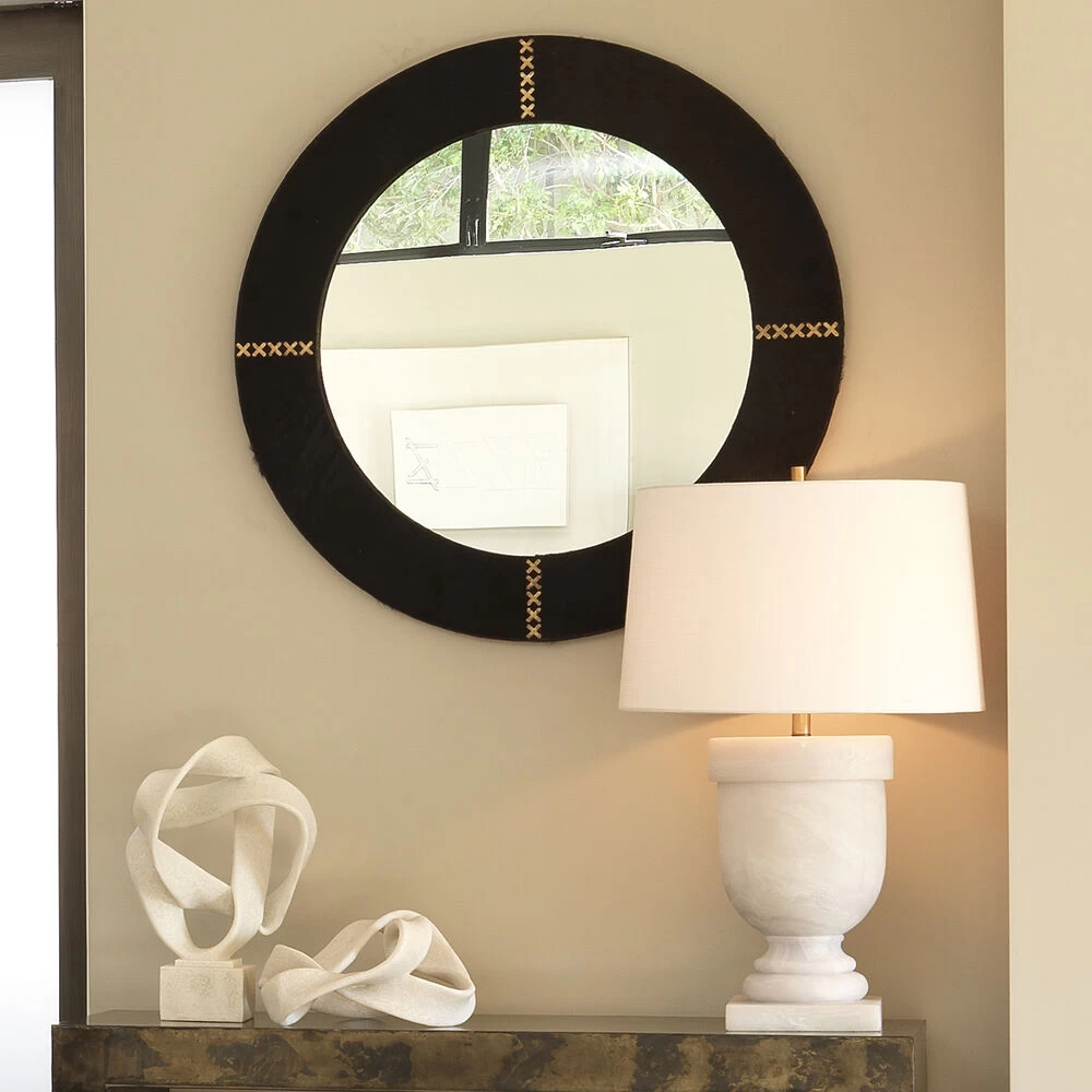 Traditional glamour is at it’s best in the Carnegie Table Lamp! The unique veining of white faux alabaster swirls around a traditional urn shape, accented with brass touches including two brass sockets for glamorous light. A white linen drum shade accents crisp highlights in the lamp’s coloring, adding to the striking, monochromatic piece.