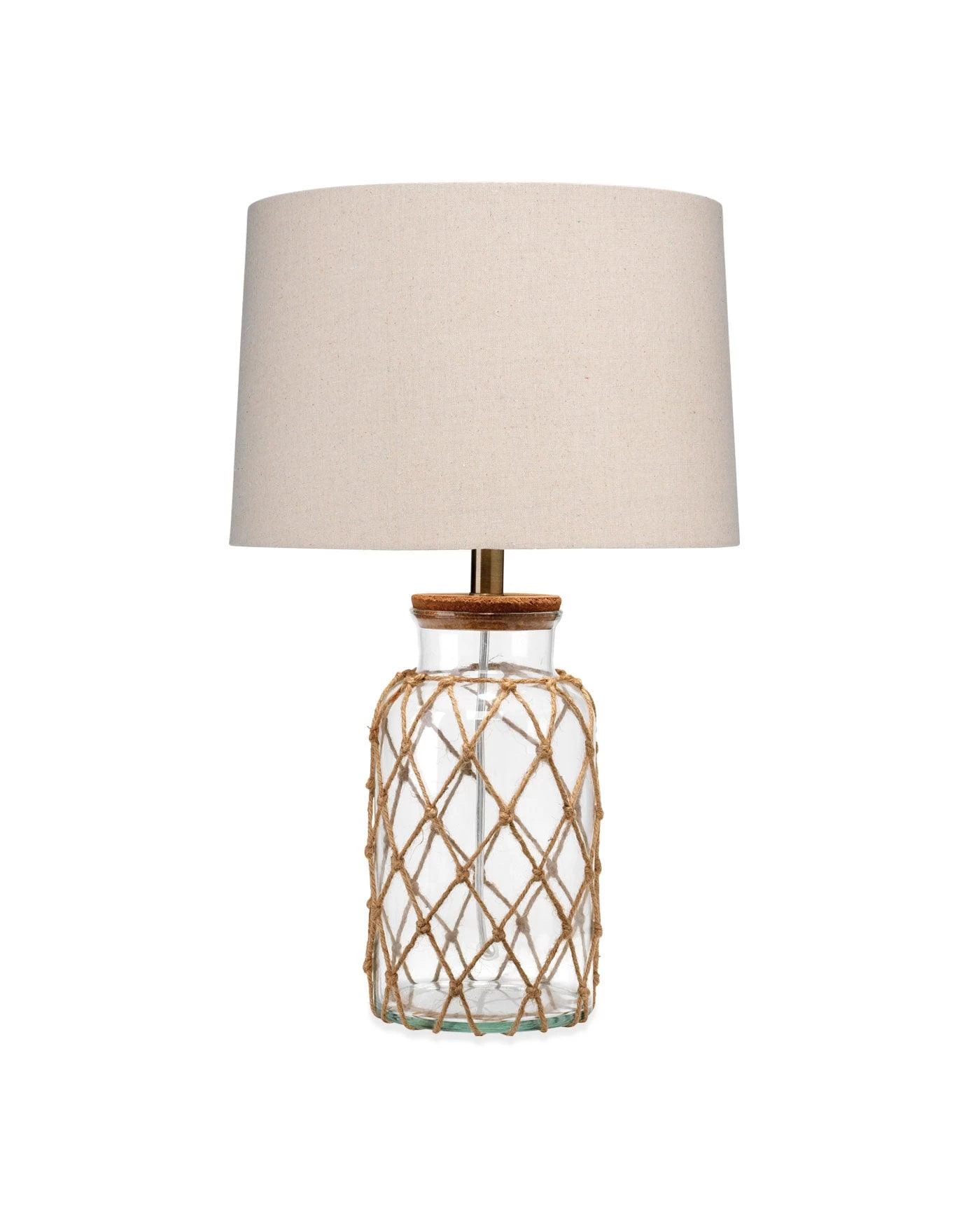 A clear glass jar table lamp wrapped in a beachy Natural jute net makes the perfect Coastal Casual lamp