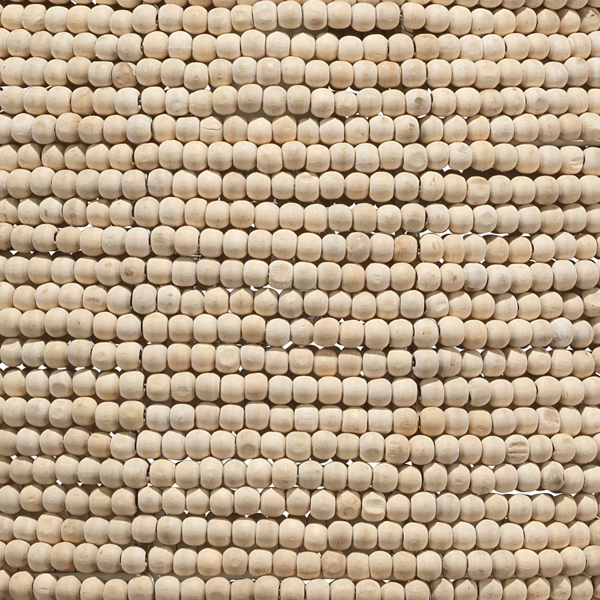 Strings of beads made with mango wood line the body of the oversized High Tide Pendant. A white iron chain compliments the Natural tone and texture of this piece. A statement piece with repeating patterns and textures like this can help add interest to any Coastal palette.