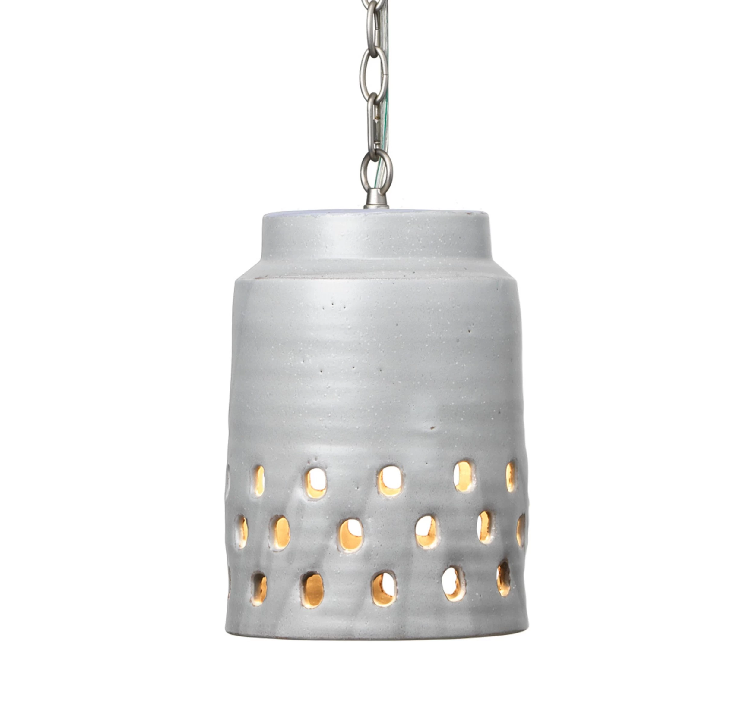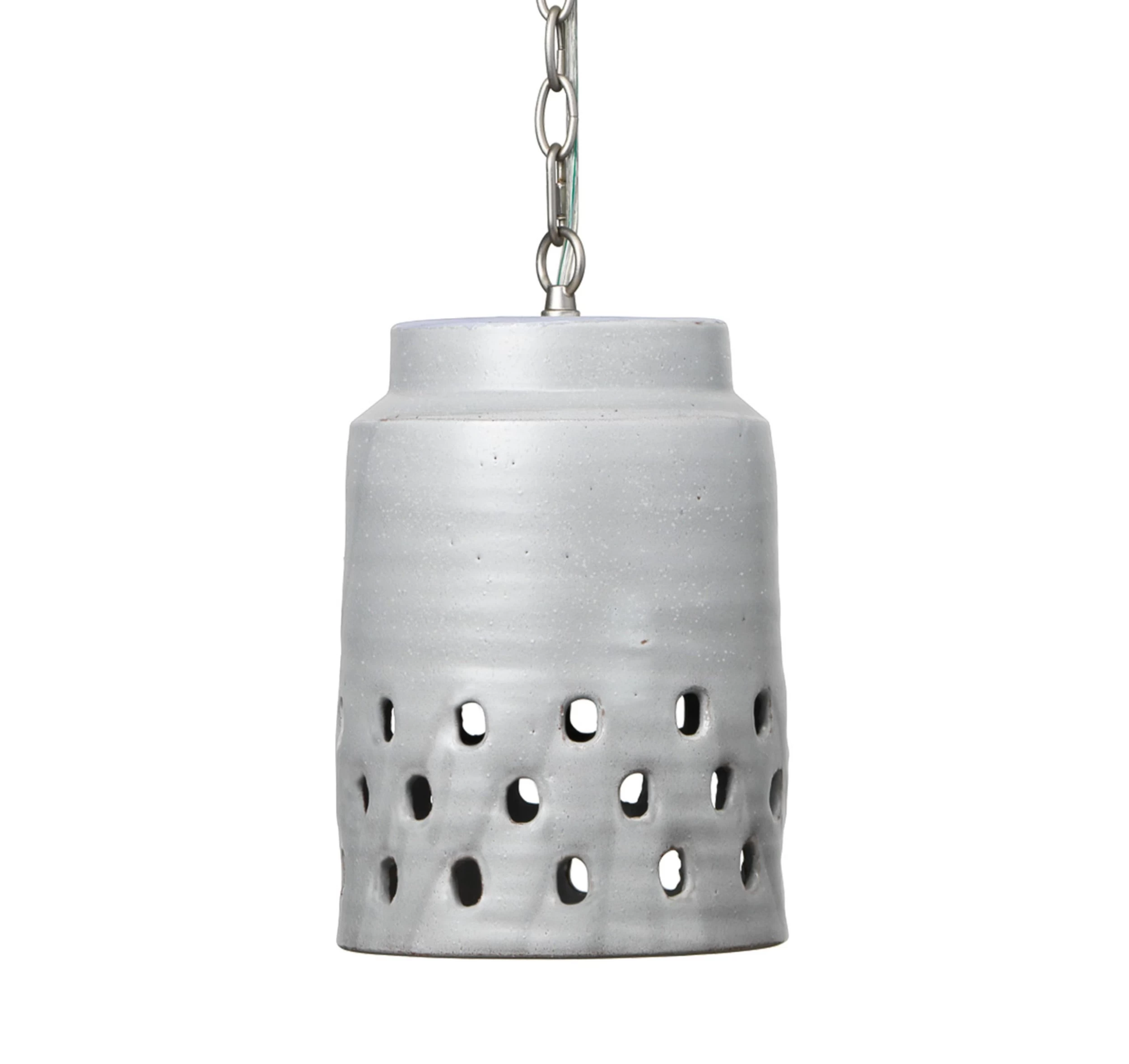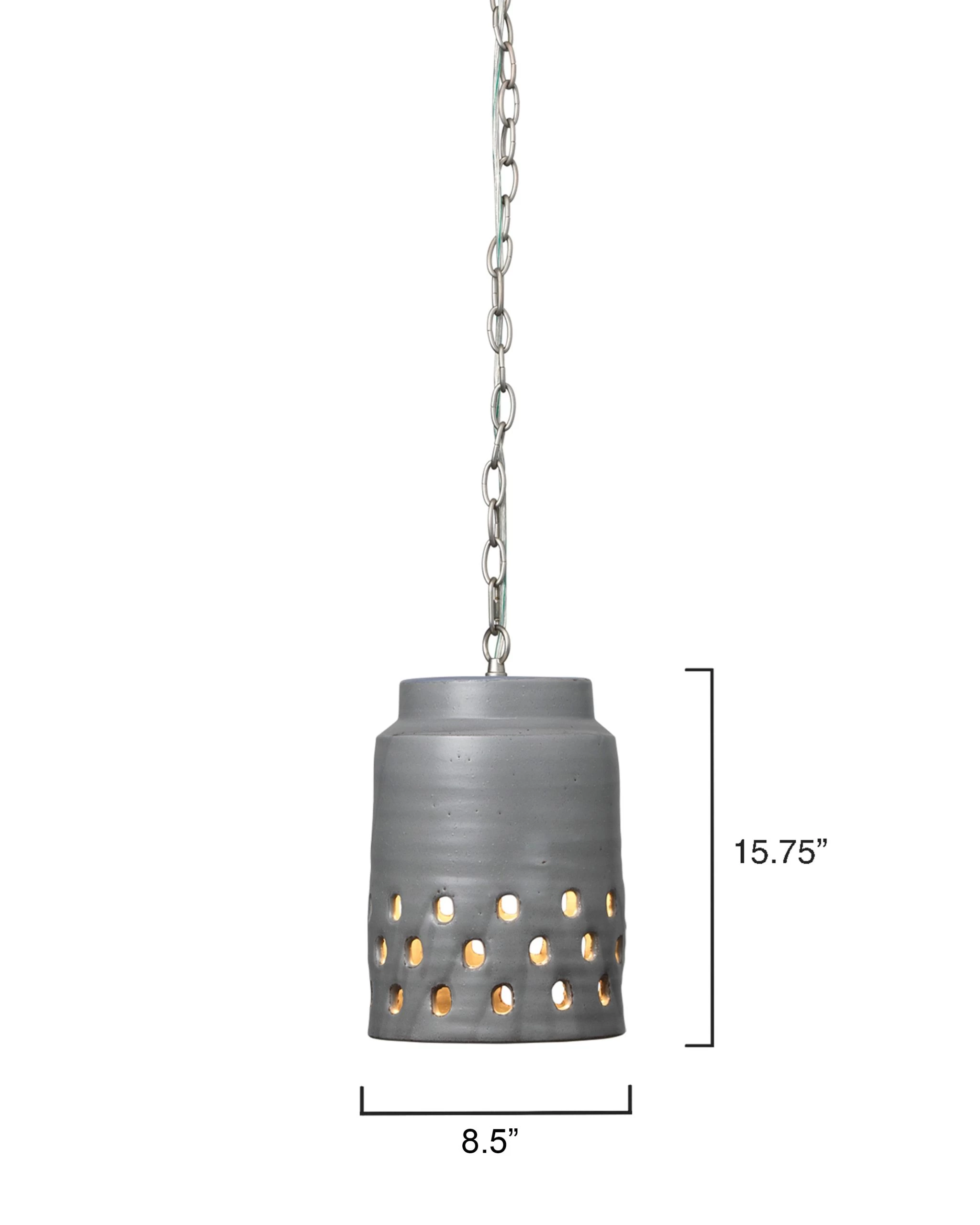 Coastal Style Grey Ceramic Tapered Perforated Pendant