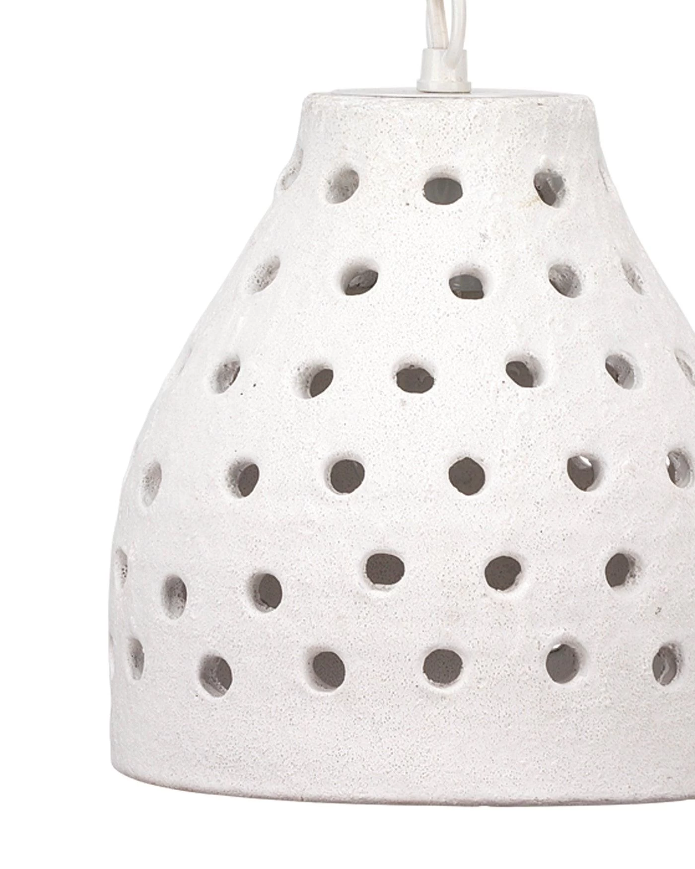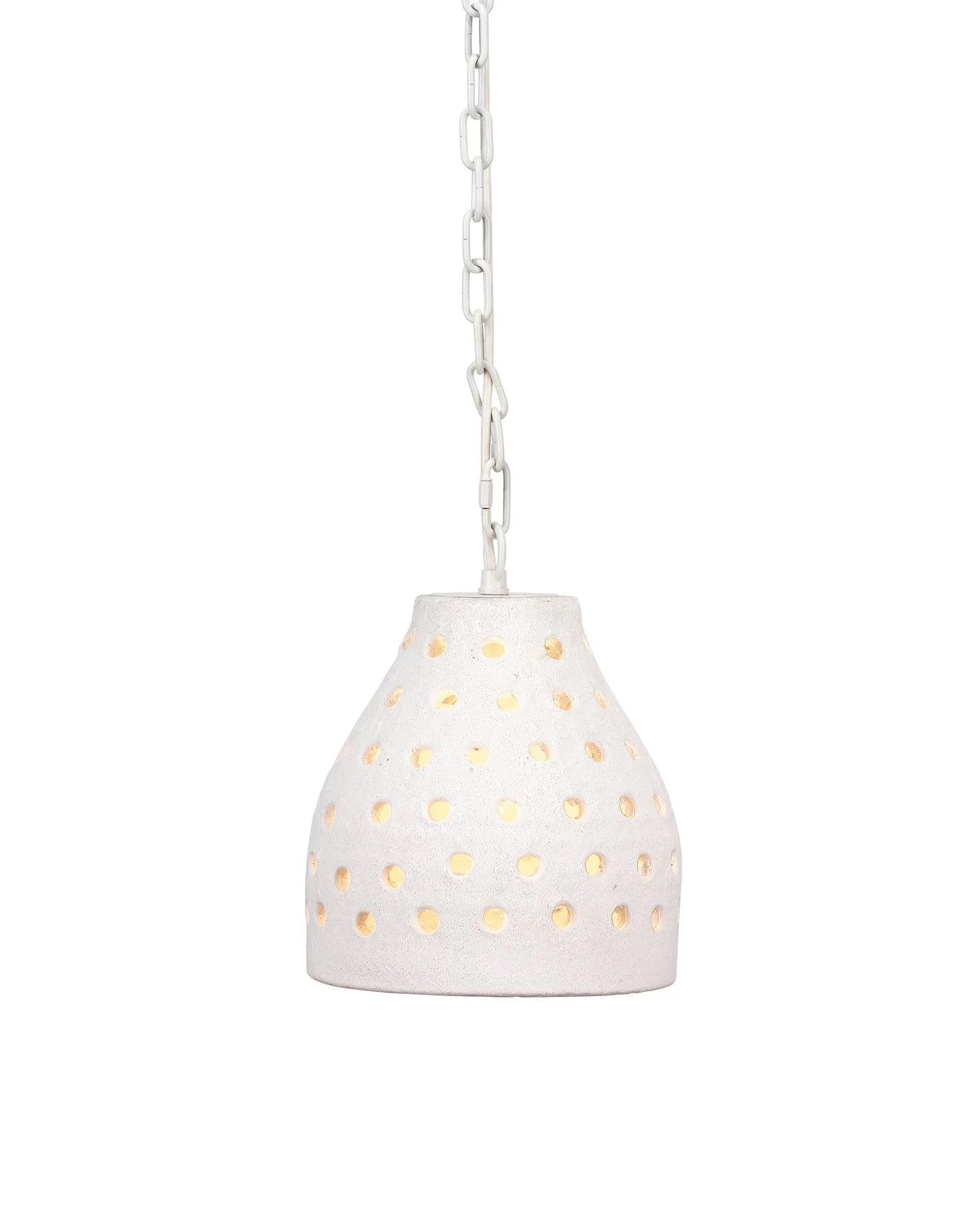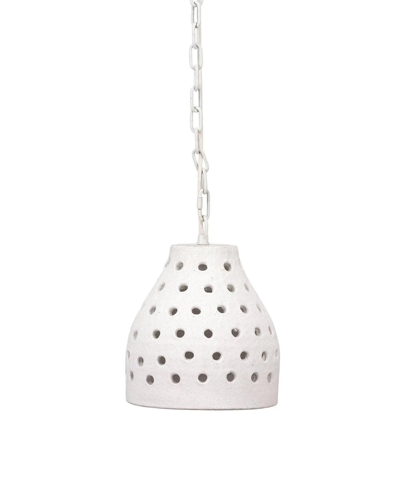 Our Medium Porous Pendant allows subtle light to pass through its pierced silhouette. As light escapes the rough, weathered texture it warms the white ceramic and creates the perfect Coastal statement in any room.