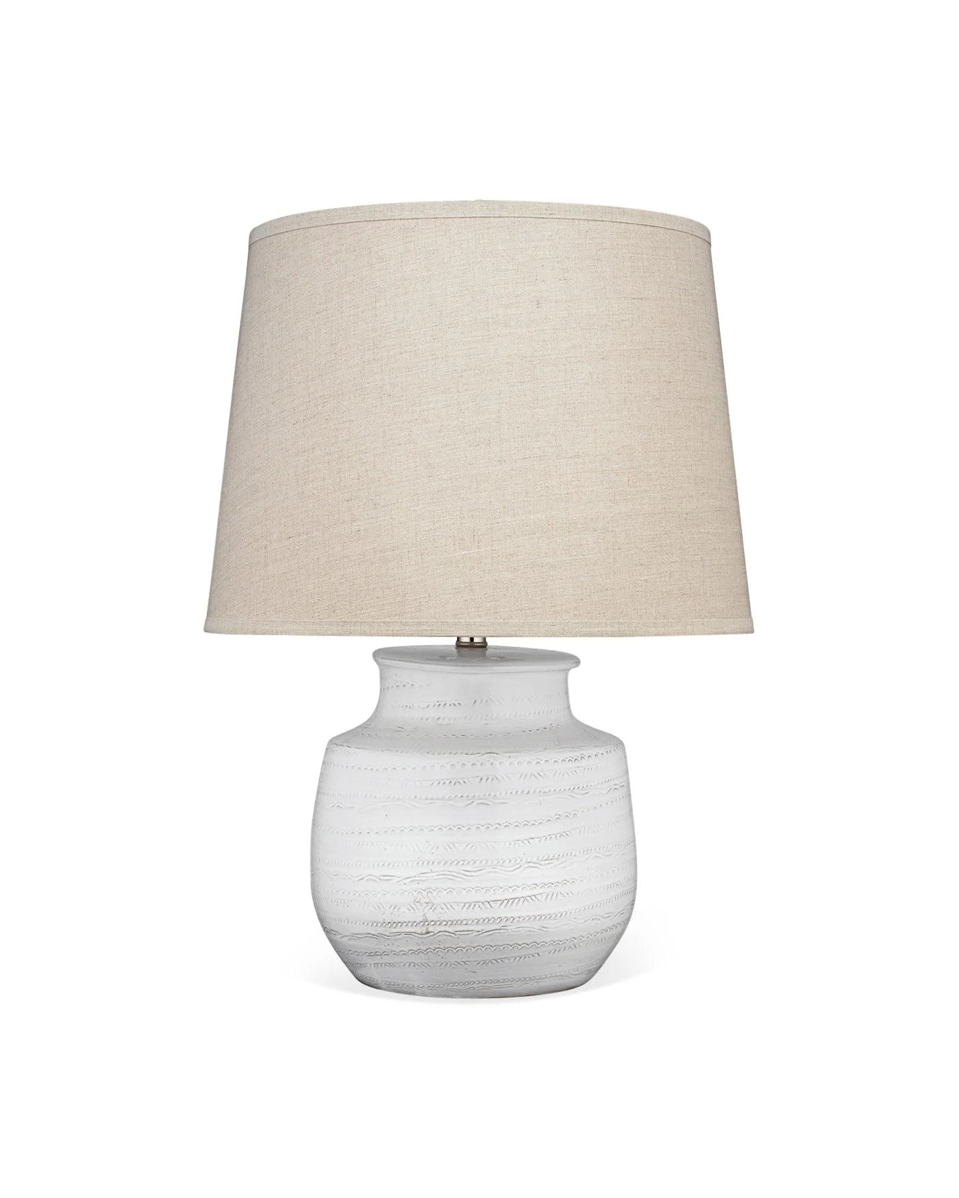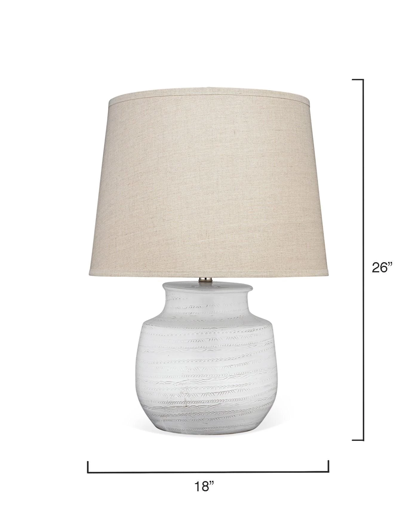 This off-white table lamp has a subtle texture traced around the lamp body, creating a Coastal elegance yet whimsical piece for any room.