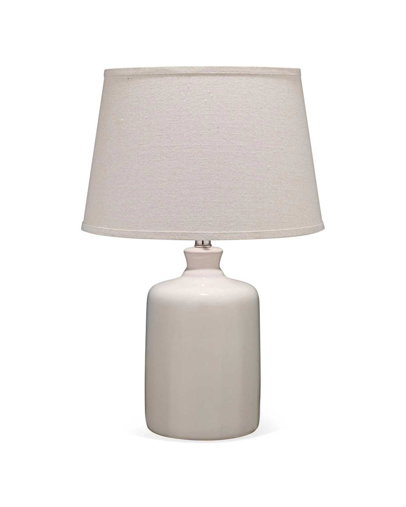 Classic shaped smooth ceramic table lamp in a soft neutral tone makes this lamp the perfect Transitional piece. Finial and harp included. Lamp and lamp shade included.