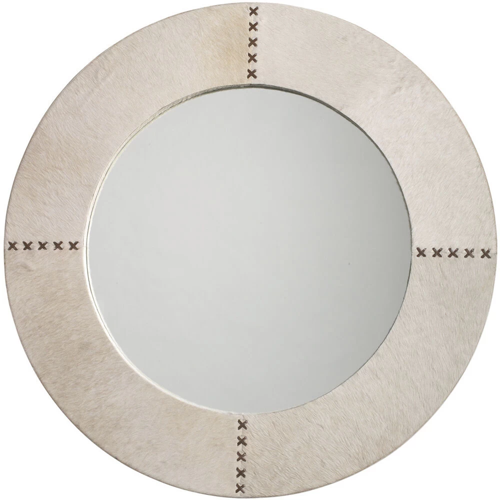 This beautiful mirror is created from naturally selected grey hair on hide, whip stitched together with white leather as a great accent.