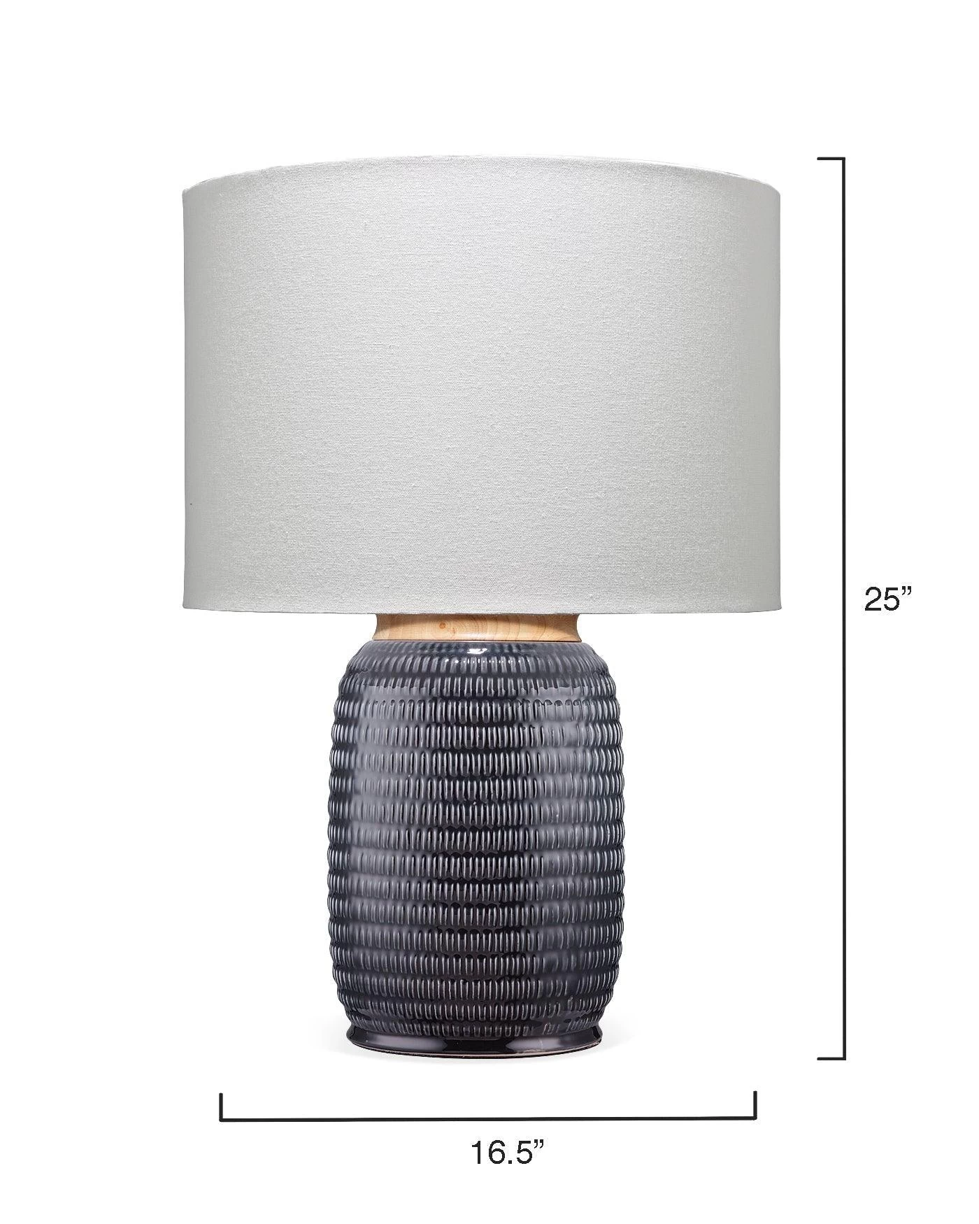 The detailed surface of this table lamp and the ceramic glaze, gives this piece a contemporary and worldly feel. Finial and harp included. Lamp and lamp shade included.