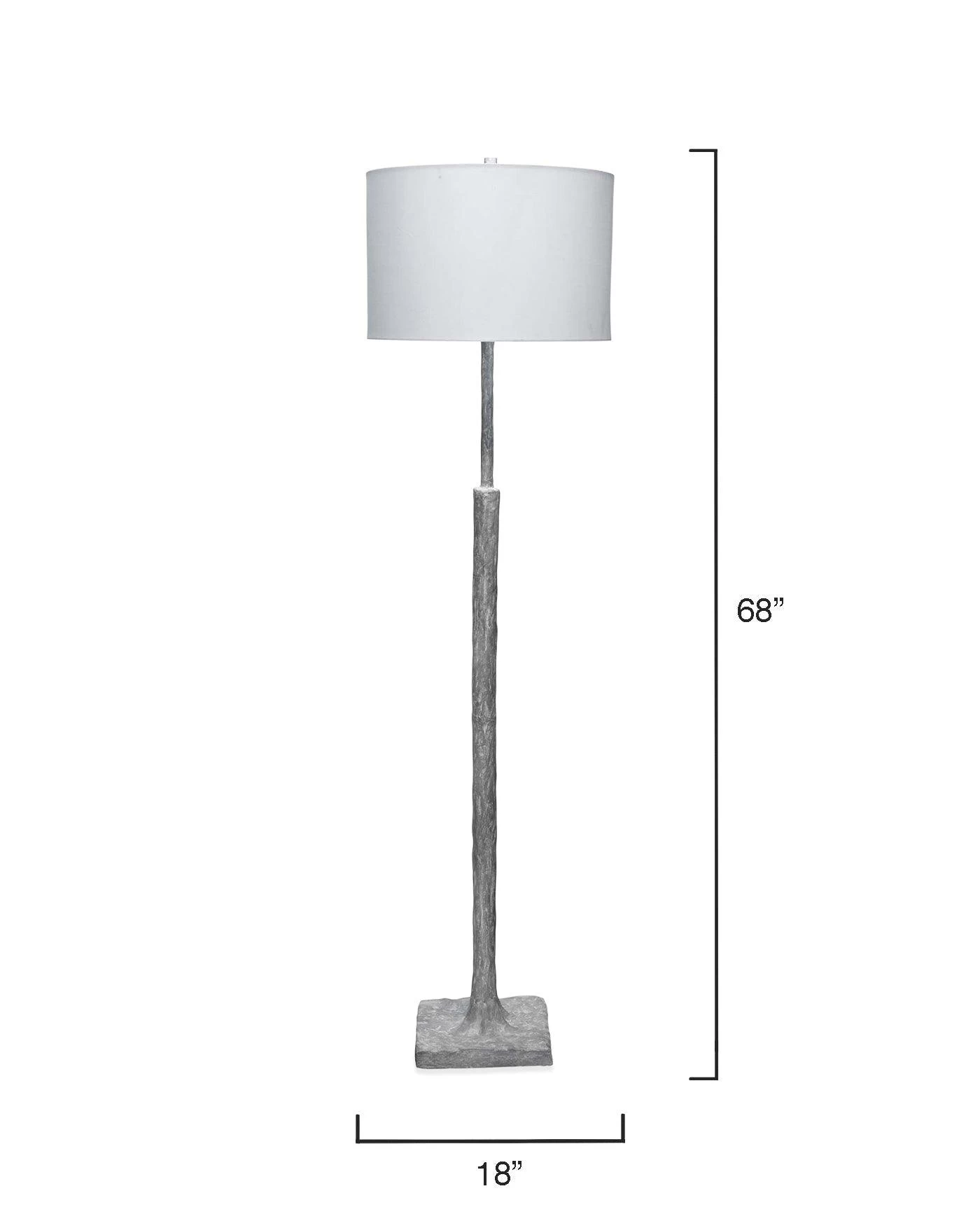 The Humble Floor Lamp is a slender floor lamp made from a polyresin plaster with a matte finish. This piece has a hand done feel thanks to its fluid shape and smoky color palette of grey, charcoal and white.