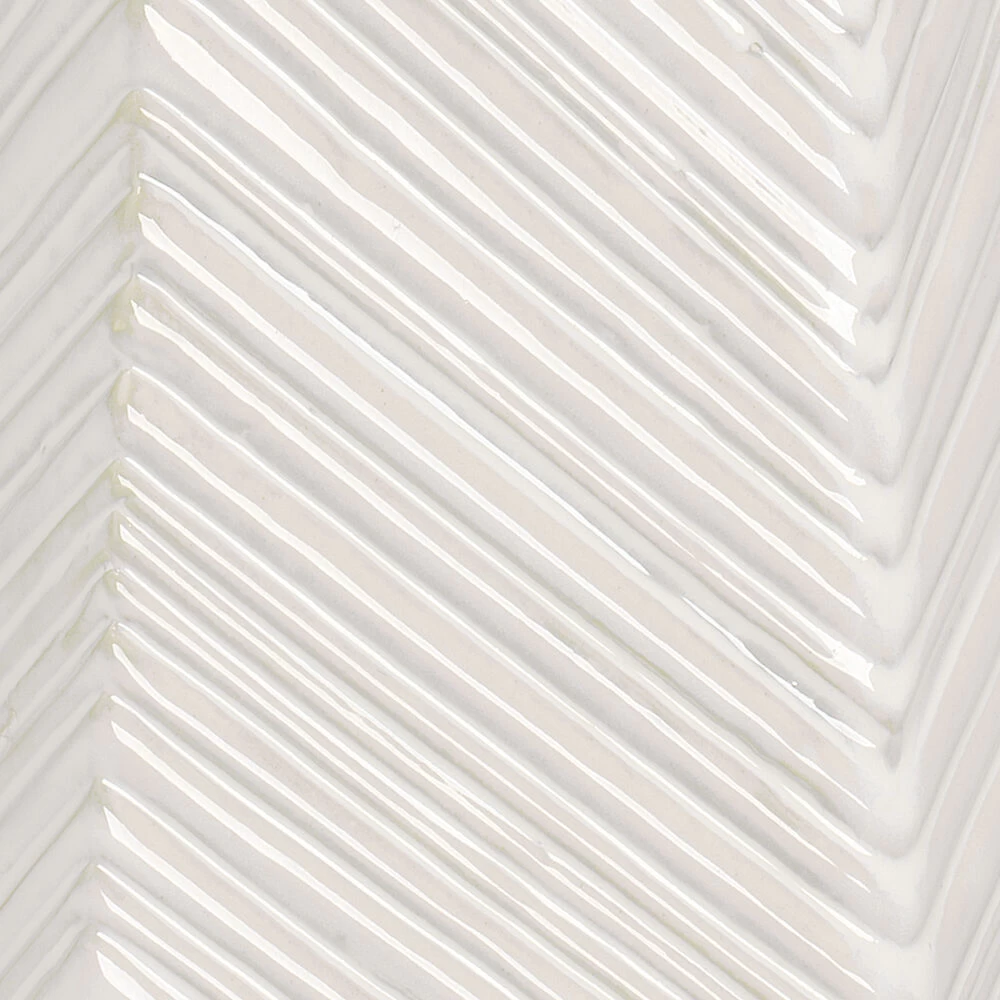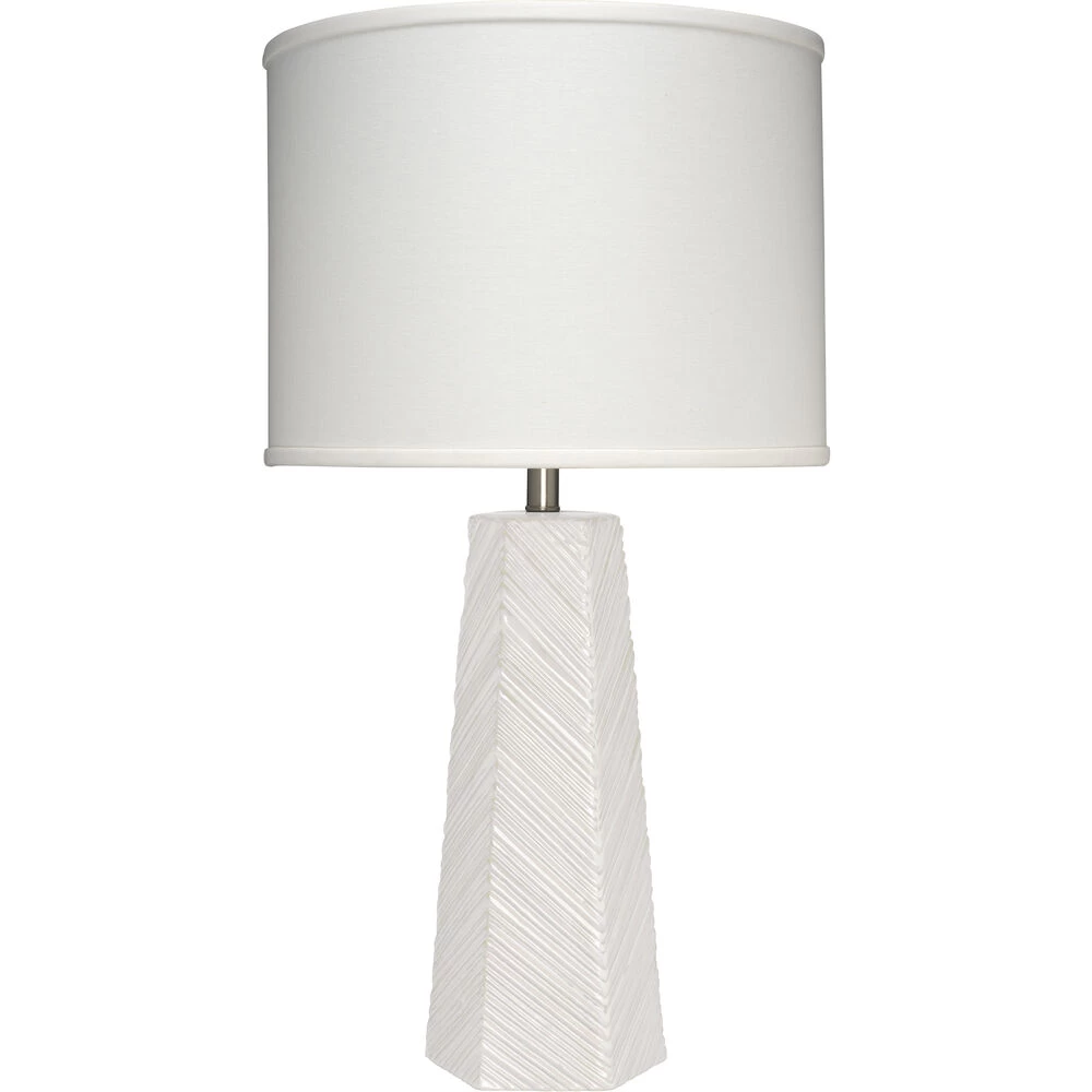 This architectural table lamp stands at cloud scraping 31″ tall. The chevron texture on the ceramic surface adds to the natural, creamy finish, making it a great casual lamp for any room.