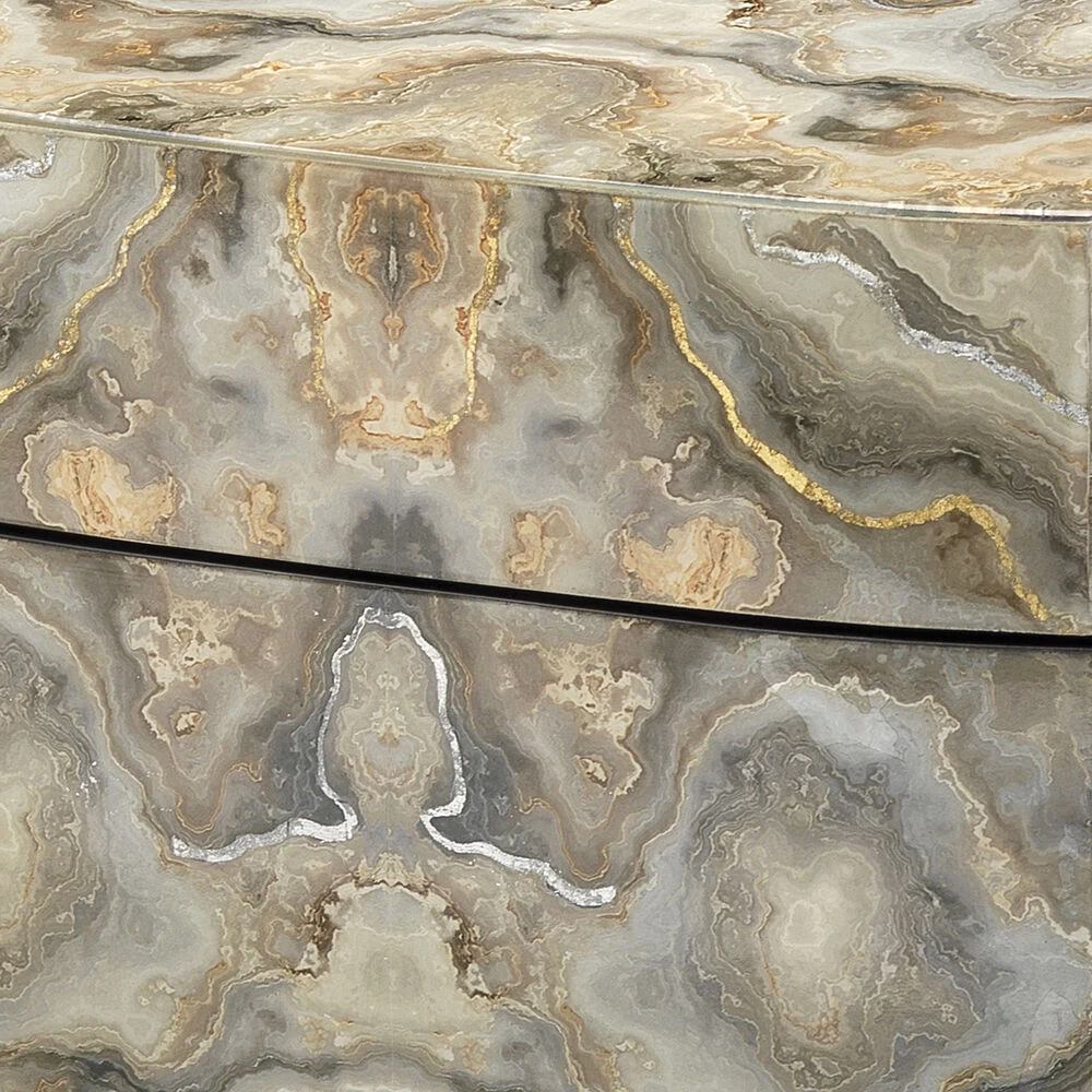 Inspired by Rorschach inkblots tests, known to examine emotion through interpretation, our Ink Blot box inspires you to look closer into the neutral tones of grey, taupe and cream, accented with silver and gold leaf. These components create dynamic patterns through overlaid photos underneath a clear lacquer.
