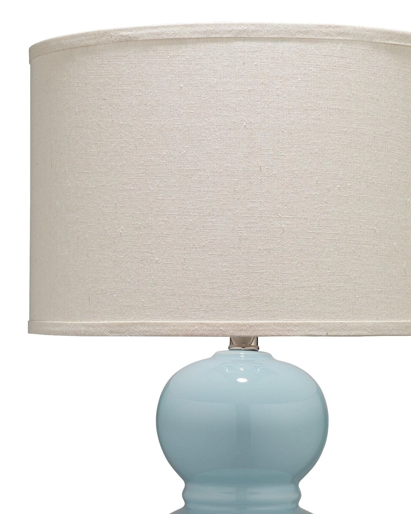 Classic shaped smooth ceramic table lamp in a soft neutral tone makes this lamp the perfect Transitional piece. Finial and harp included. Lamp and lamp shade included.