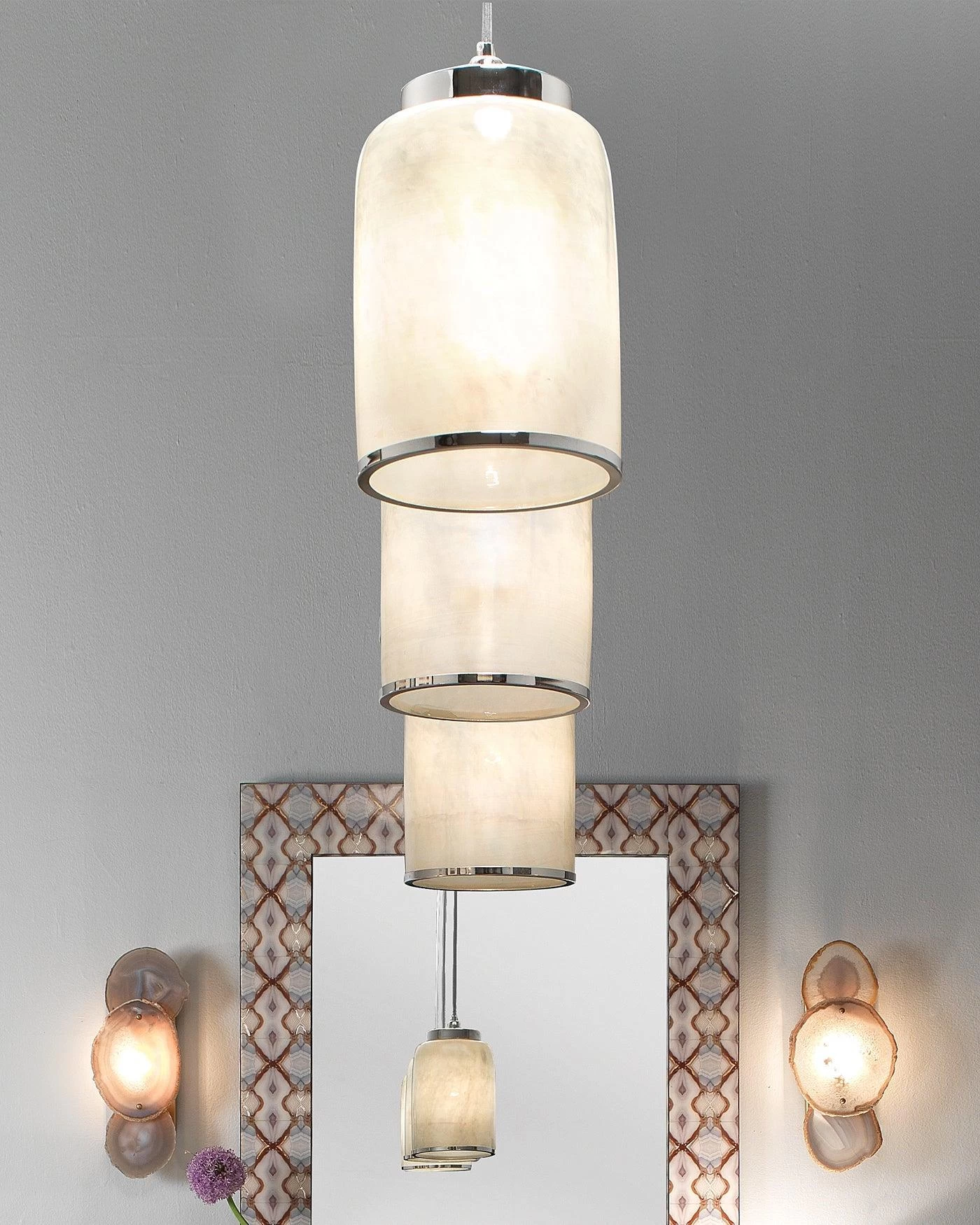 This stunning pendant was inspired by the combination fog, steam and smoke in the afternoon sun, creating a beautiful finish.