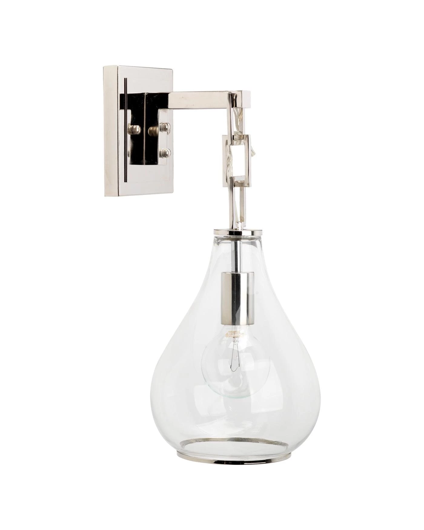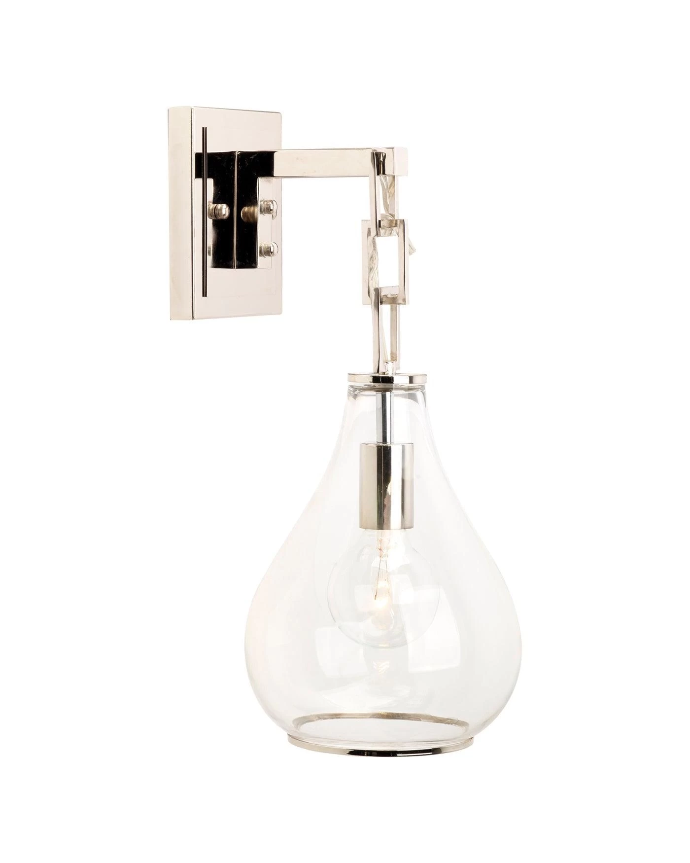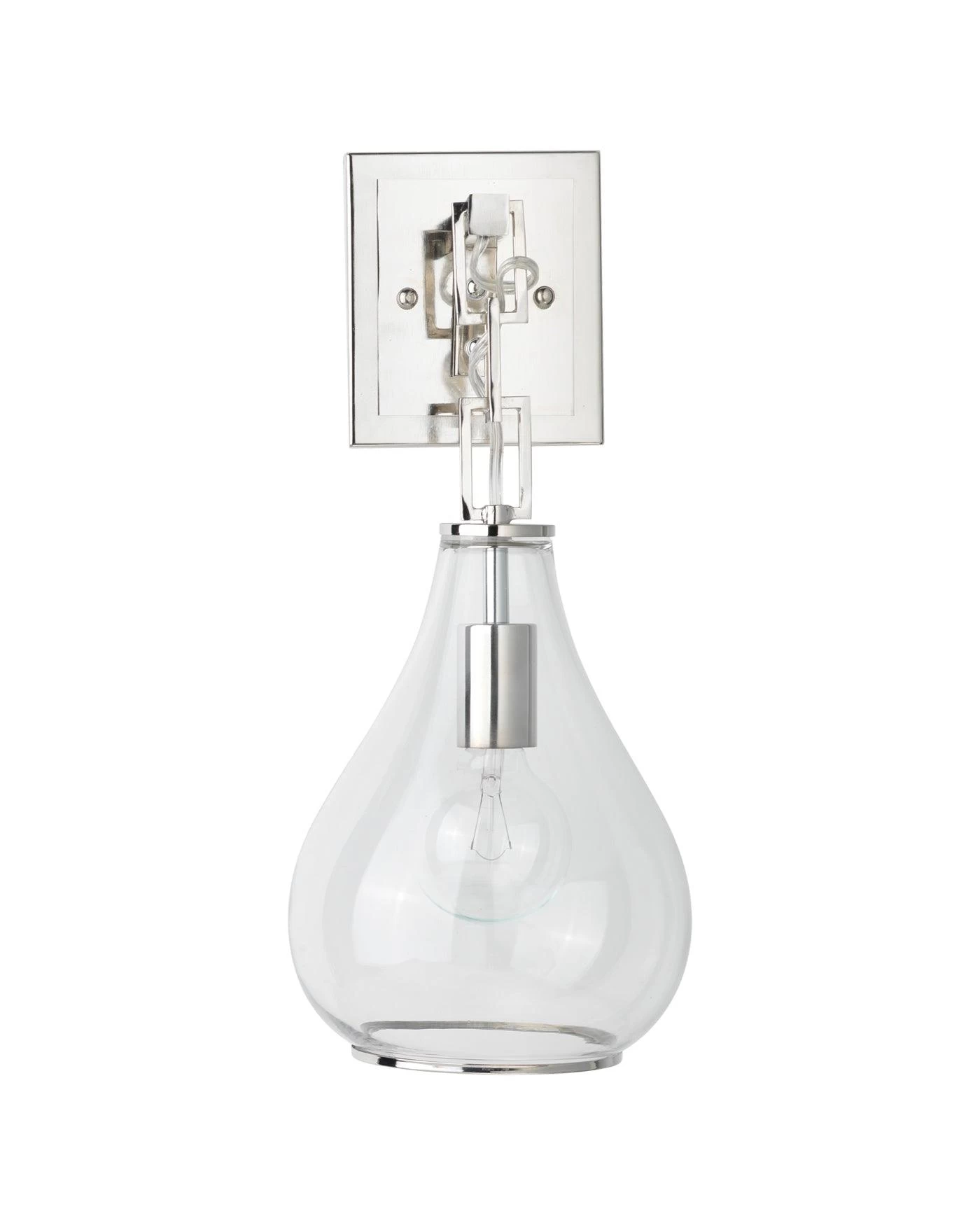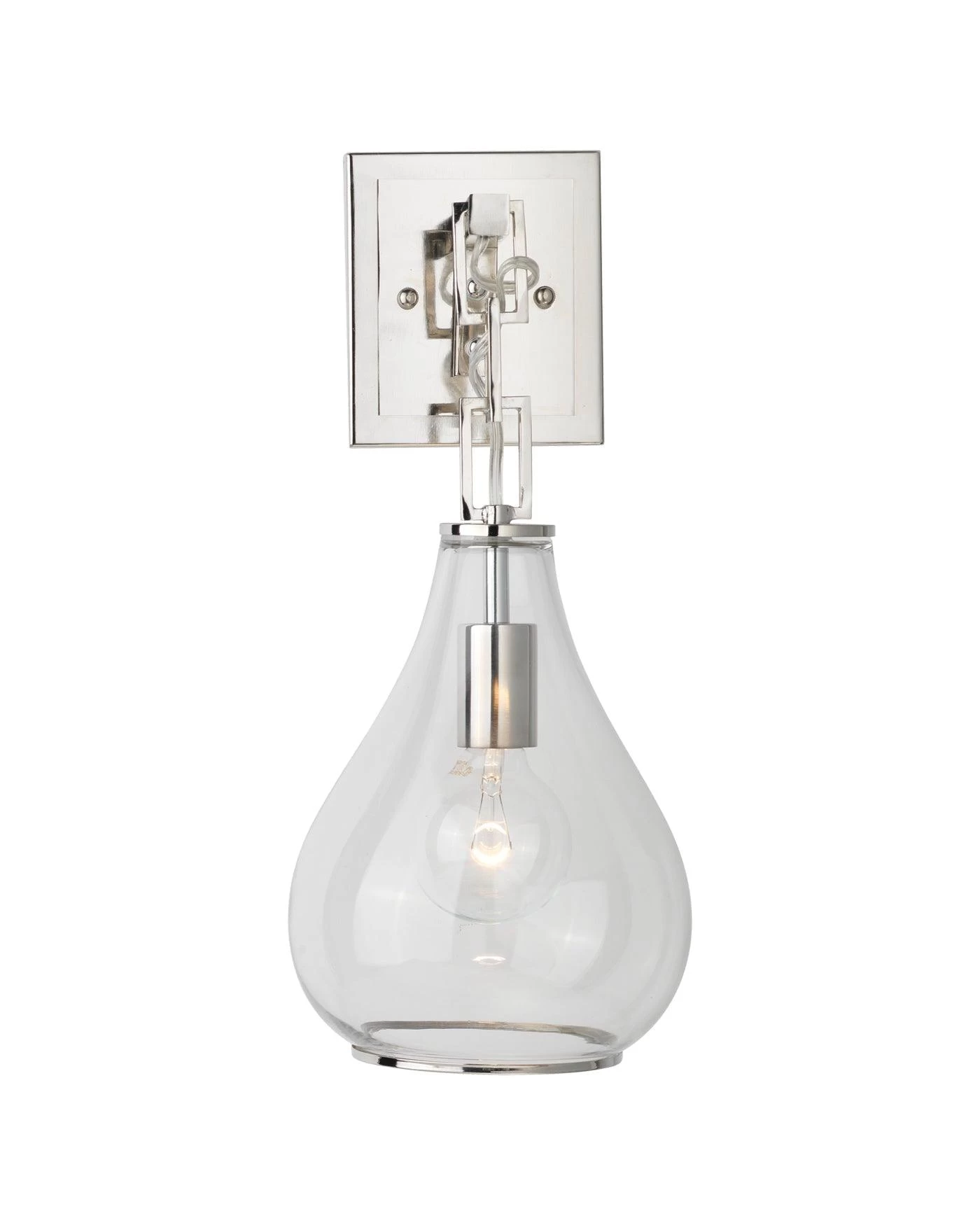 The chain link detail on the Teardrop Wall Sconce adds interest to a classic silhouette, while exquisite clear glass and nickel finishes add refined elegance and polish to any space.