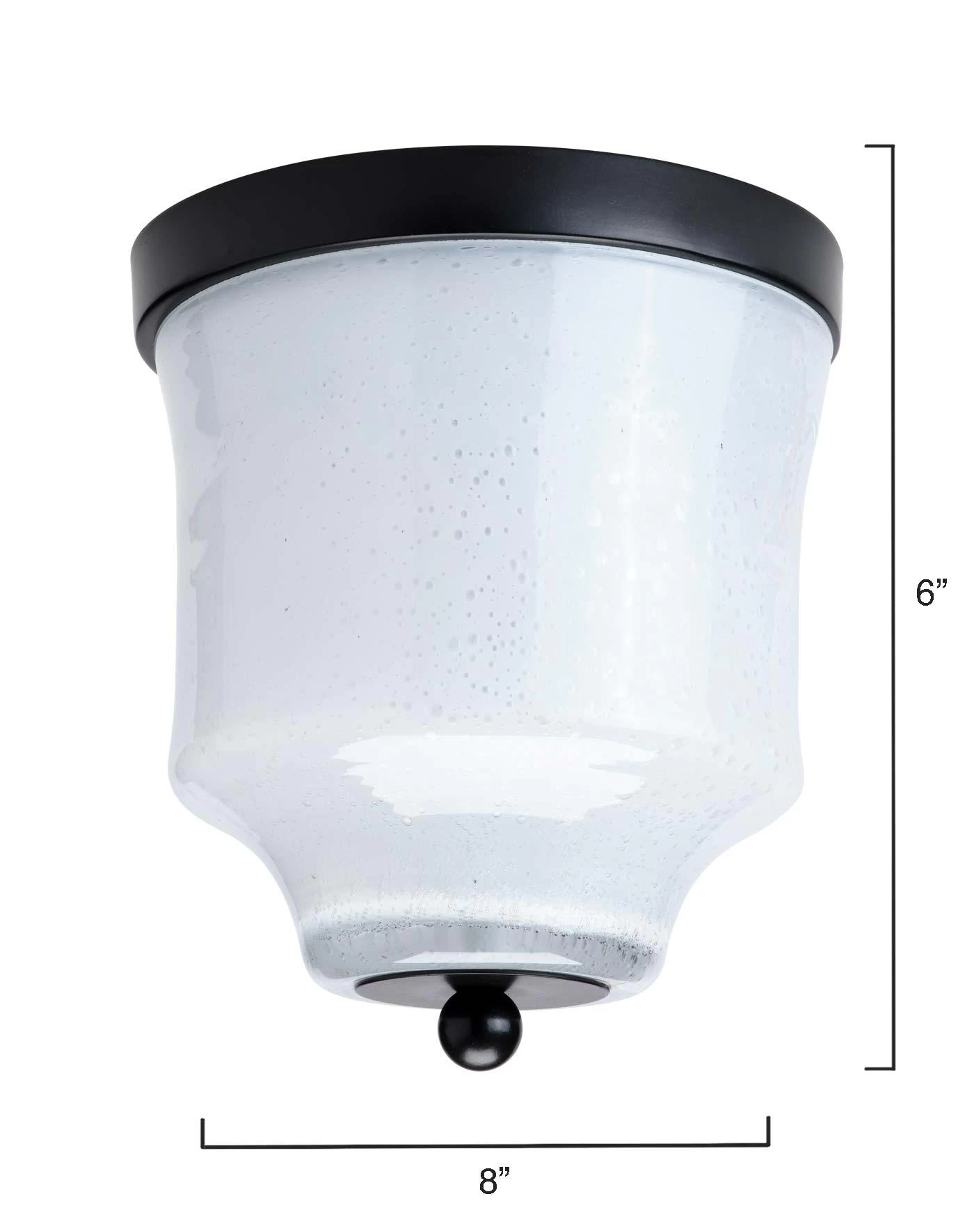 Anchored by an oil rubbed bronze ring with a matching finial, this flush mount’s body is made of handblown glass with a bubbled, milky white appearance. Simple yet elegant, this flush mount is uniquely designed to complement practically any design style in your home, whether it’s in a powder room, hallway, or entryway. Professional installation is recommended.