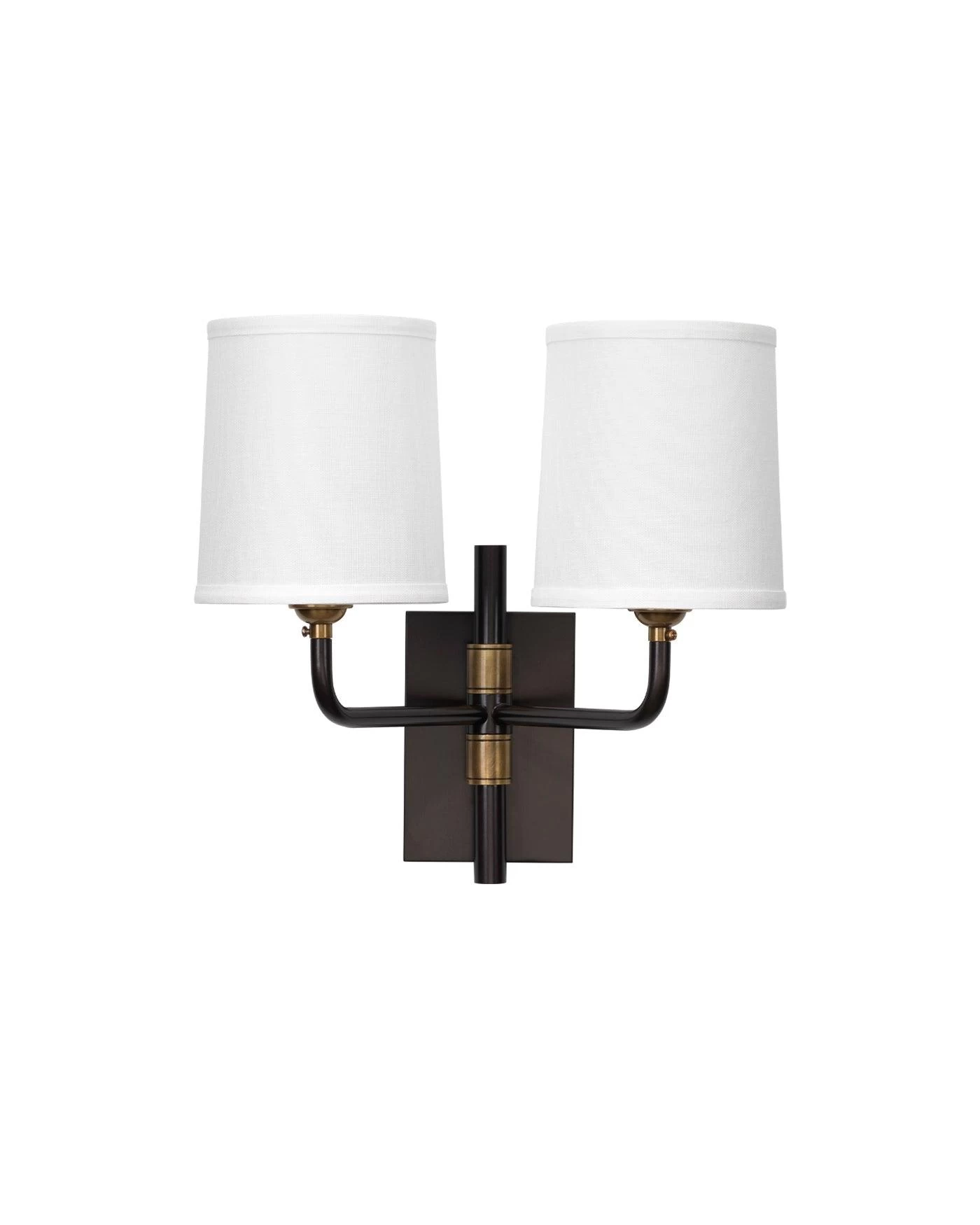 Traditional wall sconces are upgraded and elevated in the Lawton collection from Jamie Young. She adds the strength of steel and the softness of linen to lines just a little cleaner, newer, and more sophisticated than offered elsewhere, creating this classic choice for an elevated home. Available in one or two light options, each is beautifully crafted with hardware in an antique brass finish and white tapered shades. Professional installation is recommended.