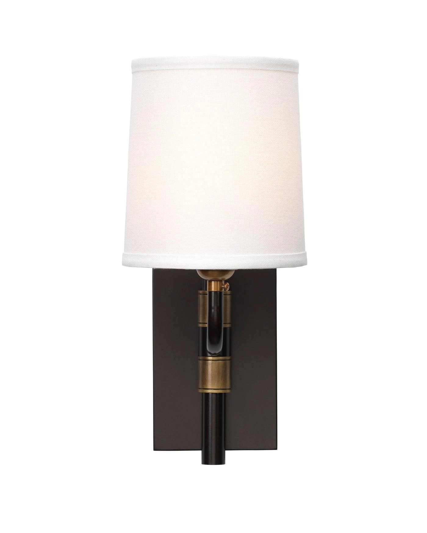 Traditional wall sconces are upgraded and elevated in the Lawton collection from Jamie Young. She adds the strength of steel and the softness of linen to lines just a little cleaner, newer, and more sophisticated than offered elsewhere, creating this classic choice for an elevated home. Available in one or two light options, each is beautifully crafted with hardware in an antique brass finish and white tapered shades. Professional installation is recommended.