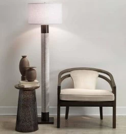 White Cowhide & Oil Rubbed Bronze 70″ Sheridan Floor Lamp
