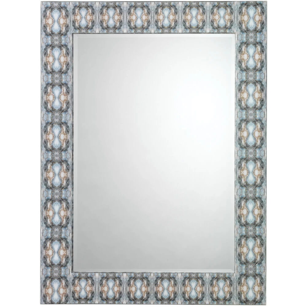 Inspired by Rorschach inkblots tests, known to examine emotion through interpretation, our Rorschach mirror inspires you to look closer into the bold tones of indigo, navy and cream, accented with silver and gold leaf. These components create dynamic patterns through overlaid photos underneath a clear lacquer.