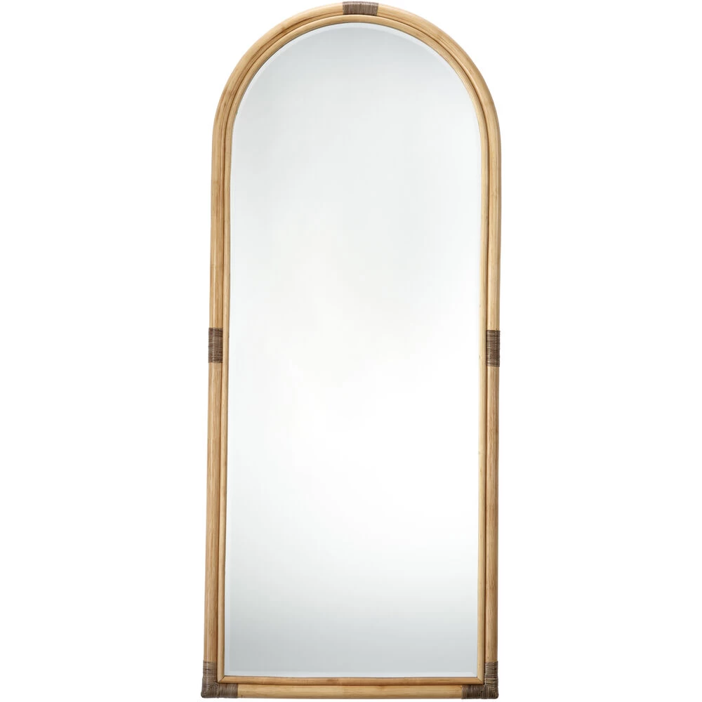 This gently arched, full length floor mirror’s natural rattan frame is subtly embellished with decorative notes in gray rattan wrap. It’s beveled mirror, finished back, and striking craftsmanship elevate a simple design into something extraordinary. Lean against the wall in your living area or bedroom; it will open up the room and let you grab a last-minute look at your outfit before you head out into the world.