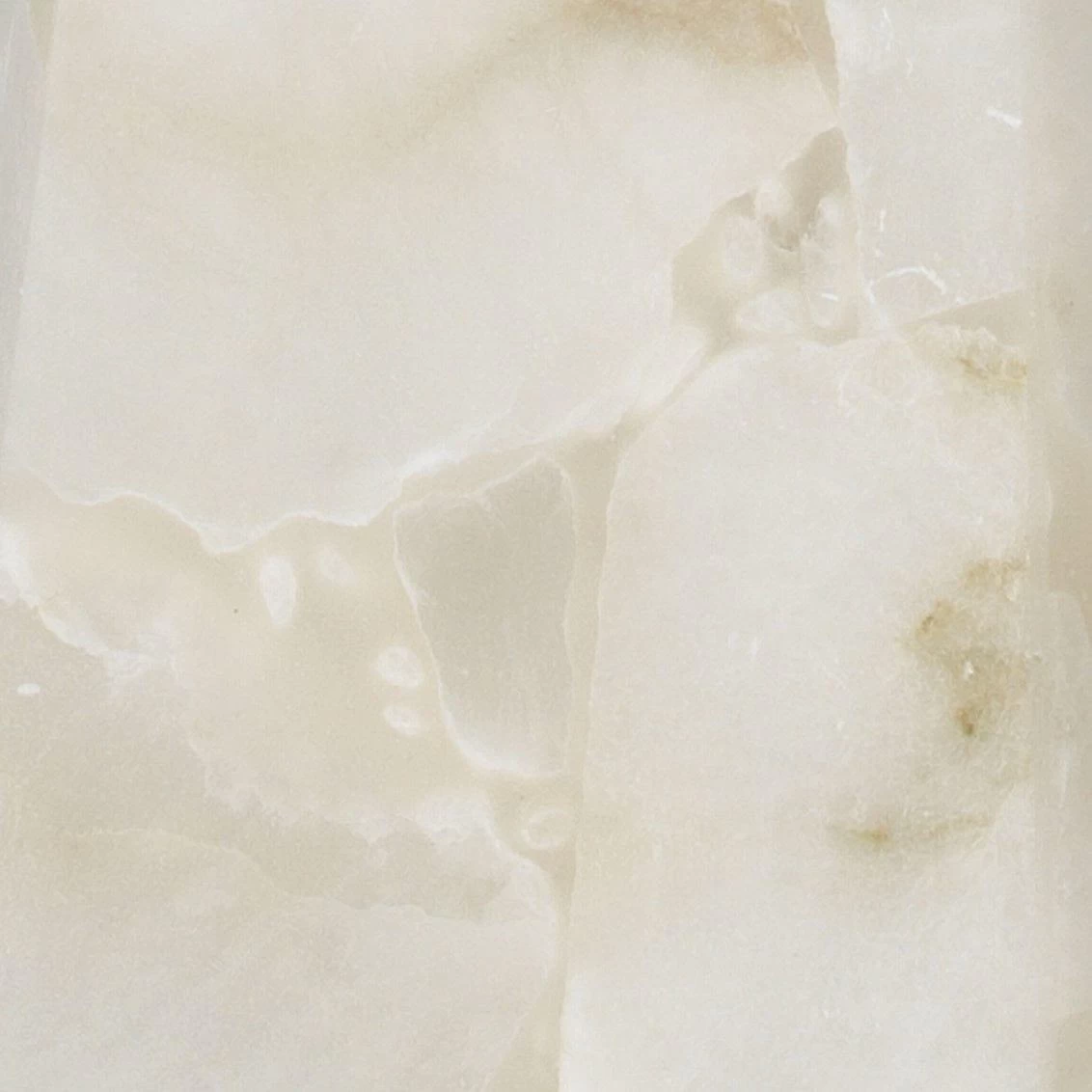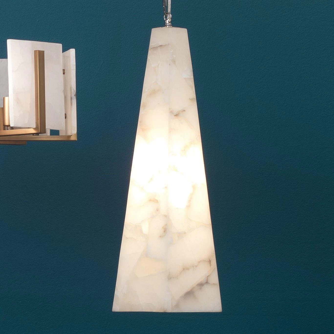 Generously proportioned and elegantly tapered pearlescent alabaster pendant.