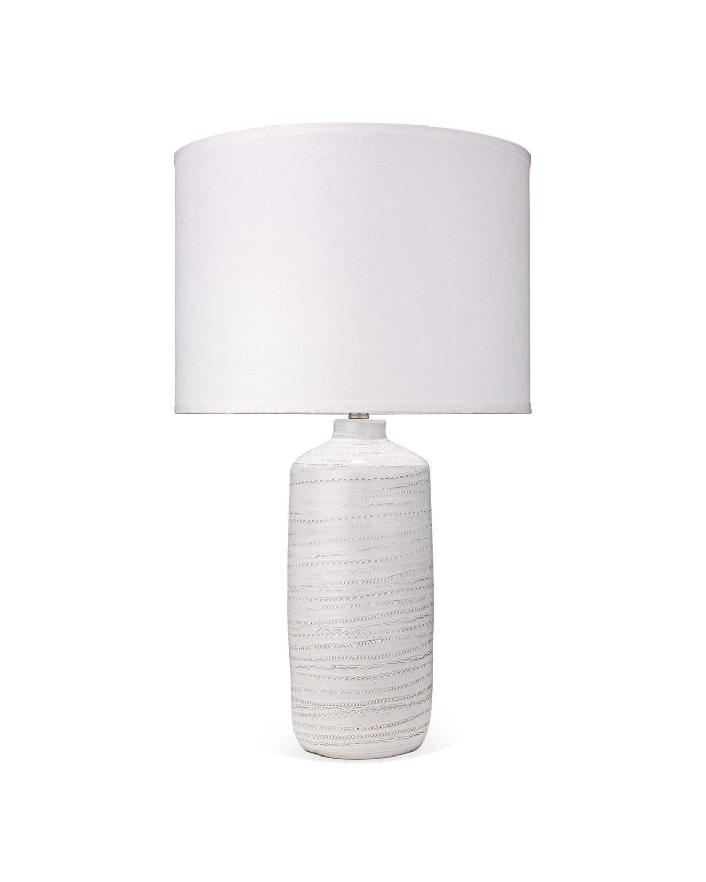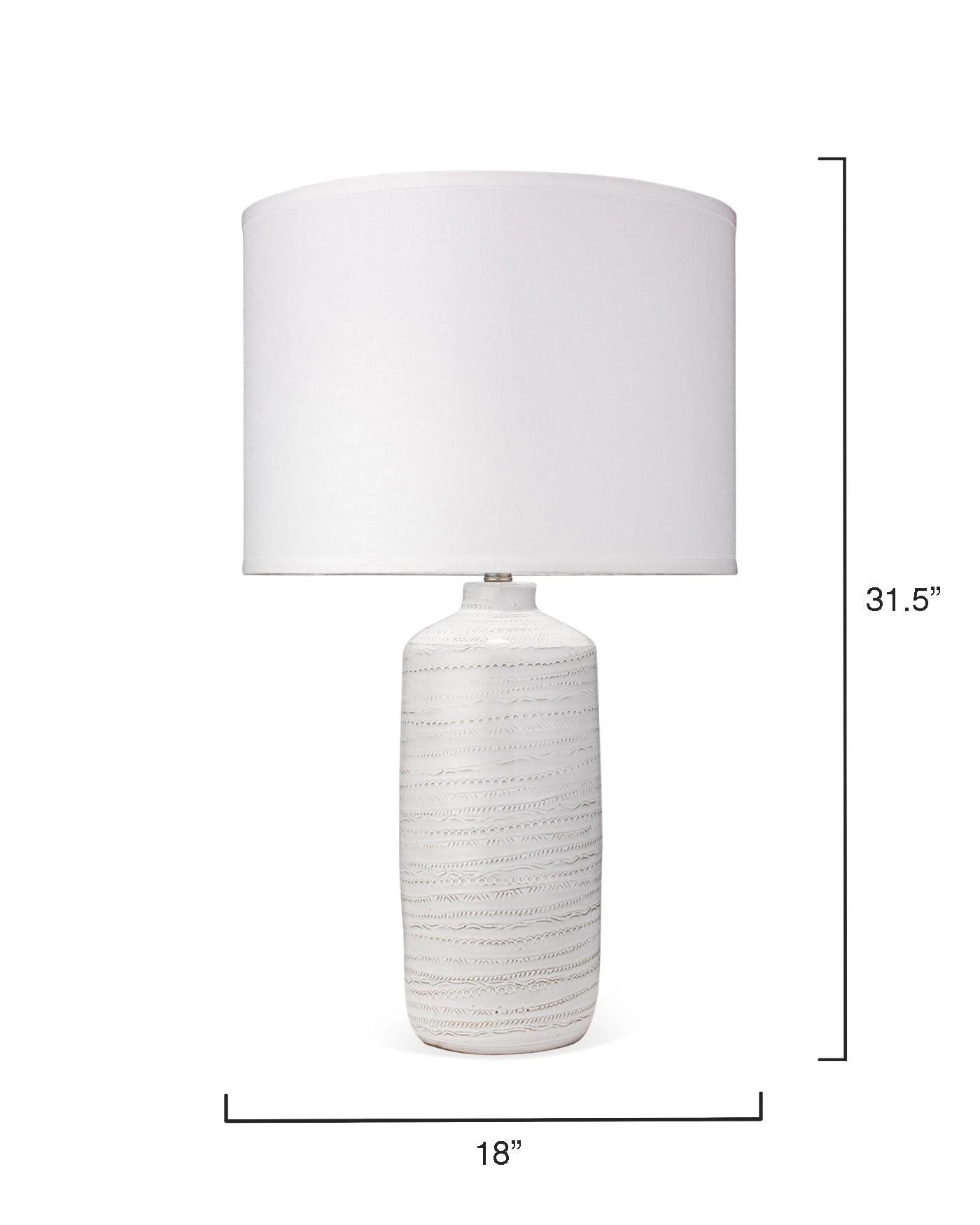 Simple yet sophisticated, creamy white, textured and hand-glazed ceramic lamp adds the perfect amount of subtle interest to any room.