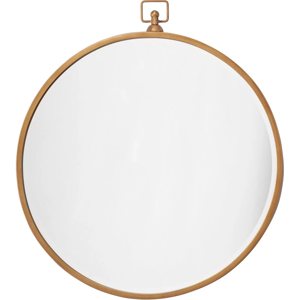 A modern take on an antique-inspired silhouette, this mirror will bring charm to a variety of décor styles. Featuring glass surrounded by a slim metal frame hand-finished in antique brass and the versatility of hanging horizontally and vertically. Mounted above a vanity, sideboard or dresser, its oval shape will soften any room while reflecting light to make your space feel bigger.